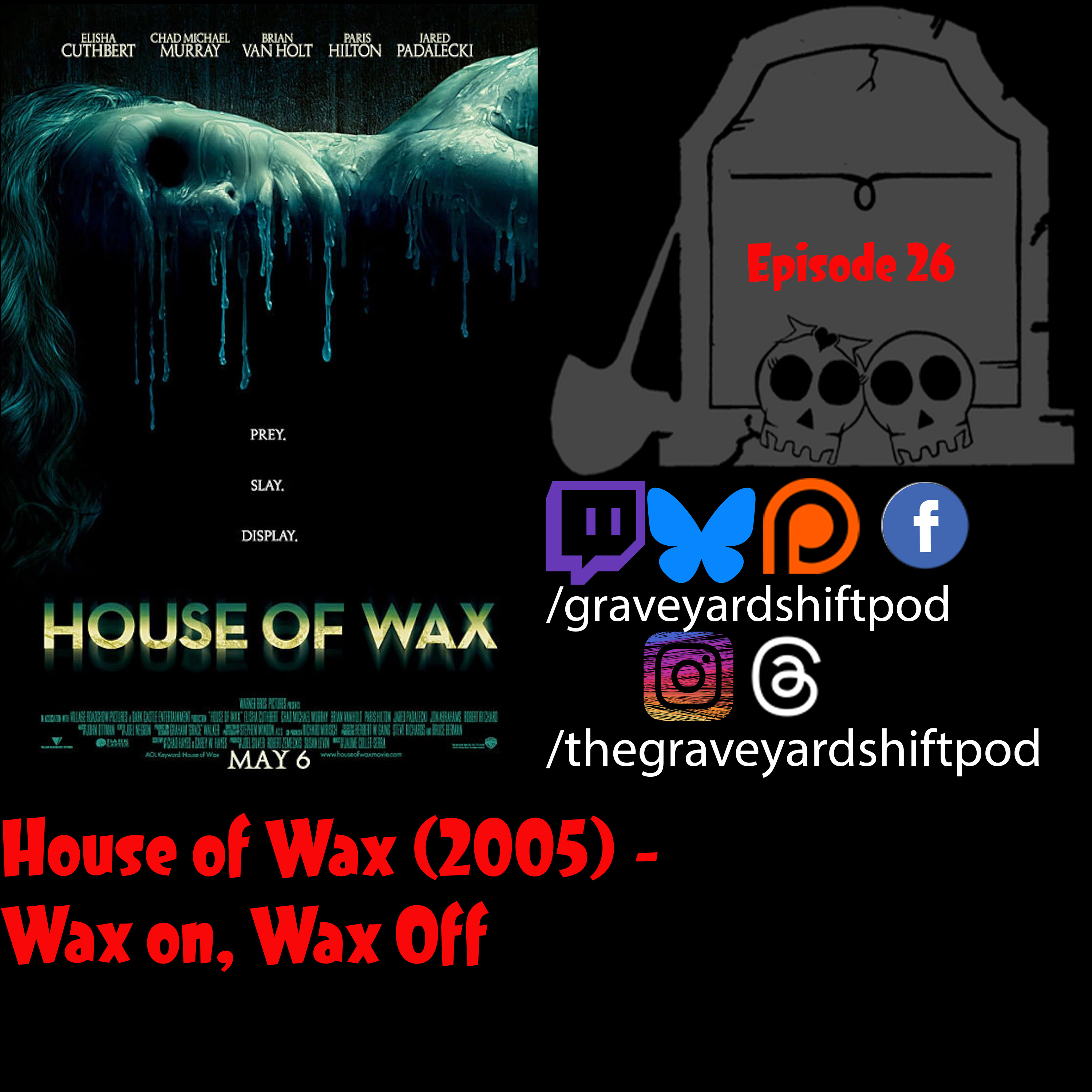 We get back to basics this week when we watch a fan pick, House Of Wax (2005). We check out some potential new studio spaces, discuss what worked and didn't work in this remake, talk about why a literal house of wax would be a terrible idea, and contemplate whether or not certain scenes involving Paris Hilton were intentionally made to remind us of another time she was on film.