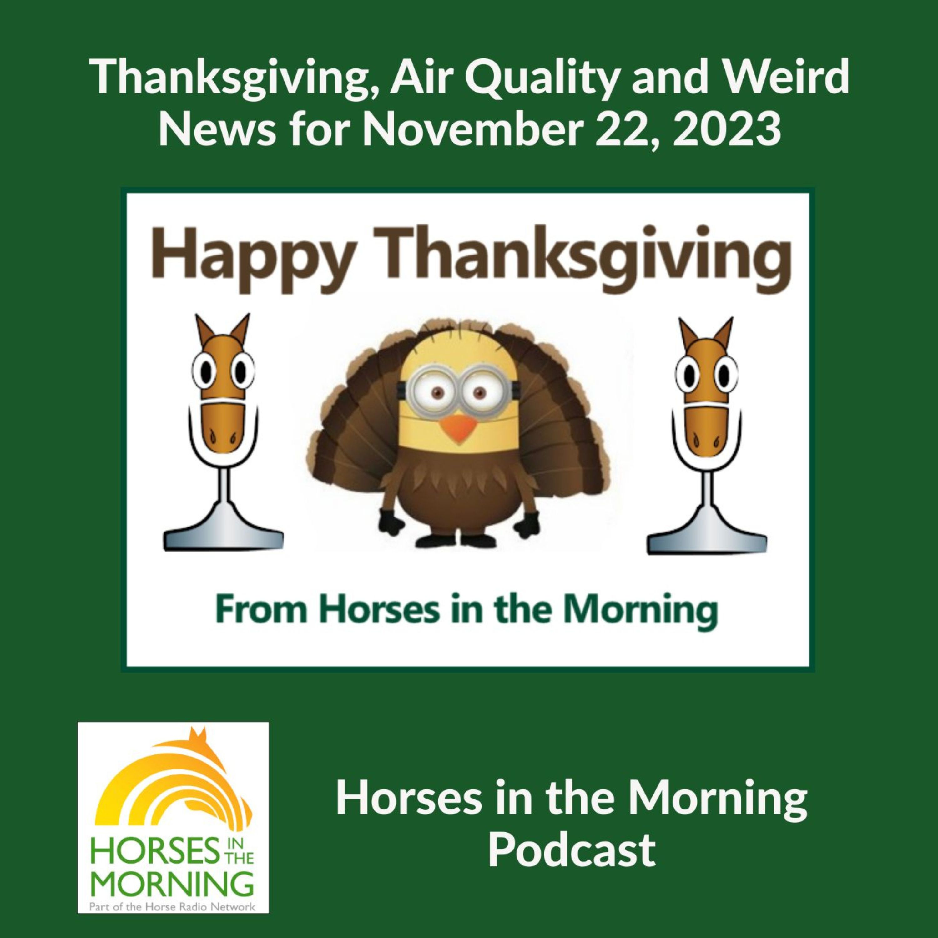 HITM: Dr. Pinkerton from UC Davis tells us about the importance of good air quality for your horses, we do our annual look at Thanksgiving and some Weird News. Listen in….