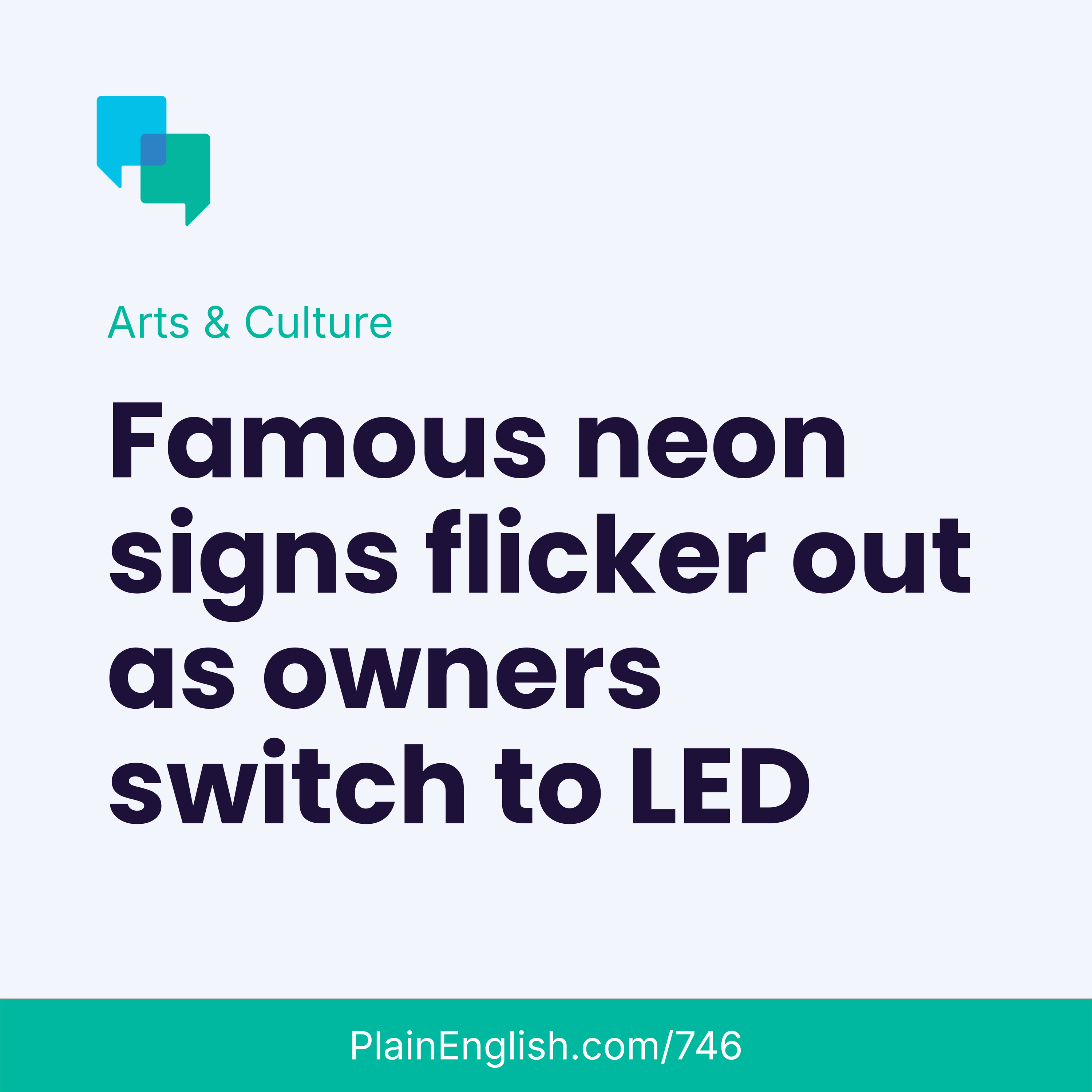 Today's story: Neon signs have lit up city streets for about a century. But building owners are increasingly swapping hand-blown neon tubes for sleek LED bulbs. The new bulbs are cheaper, easier to maintain, and more energy-efficient. But the old neon signs are a nostalgic part of urban history. What will cities be like without them?