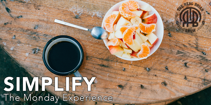 Happy Monday! In today's Monday Experience, Brian talks simply about simplifying and how he didn't even realize the effect it was having on his life. His frame of reference for simplifying was being on time; after receiving a ton of negative feedback and criticism for always being a few minutes late to things, he found that after in his somewhat-separate efforts toward simplifying his life... being on time to things was a natural side effect. Pretty cool!