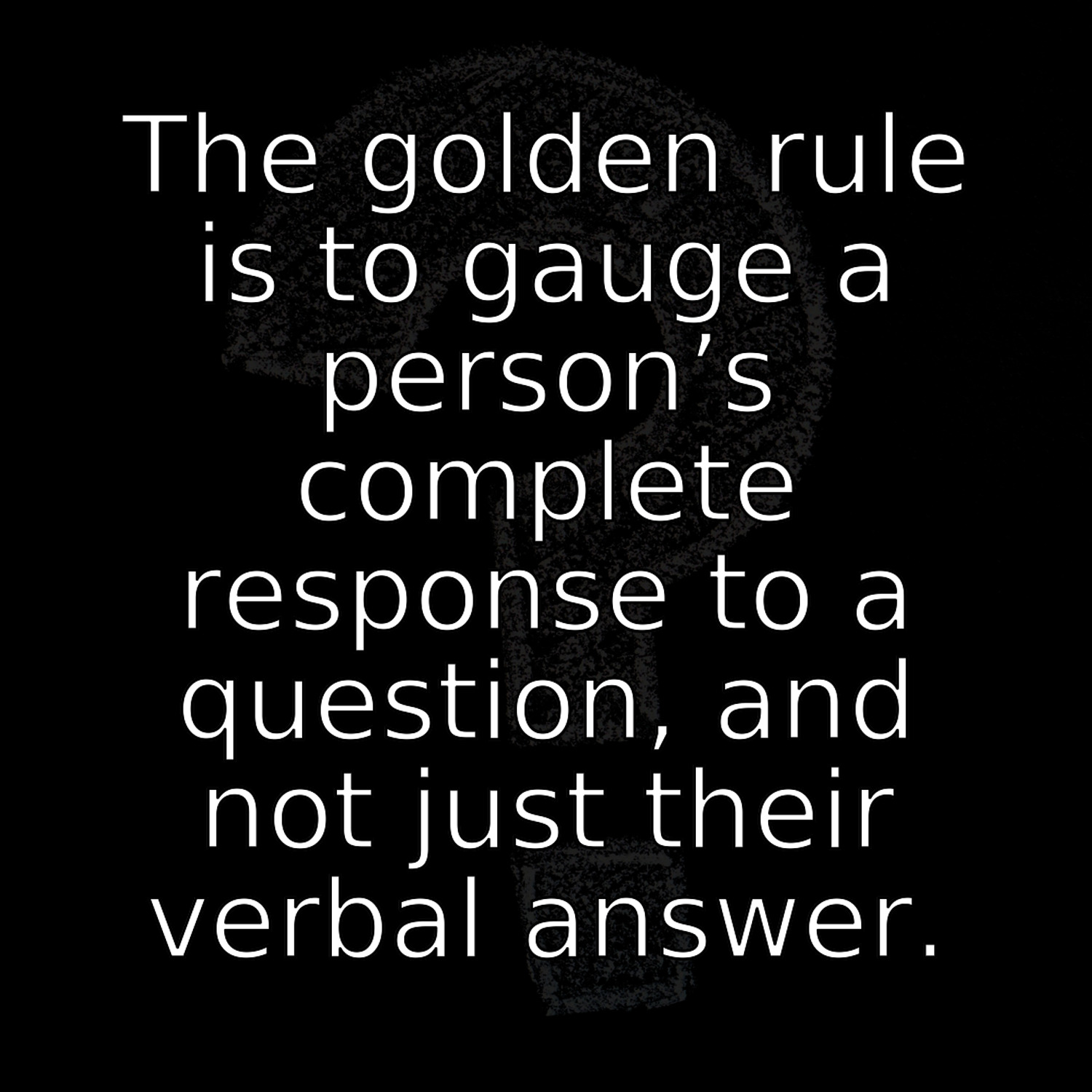 • The golden rule is to gauge a person’s complete response to a question, and not just their verbal answer. Use questions to trigger an emotional reaction and analyze this in context.