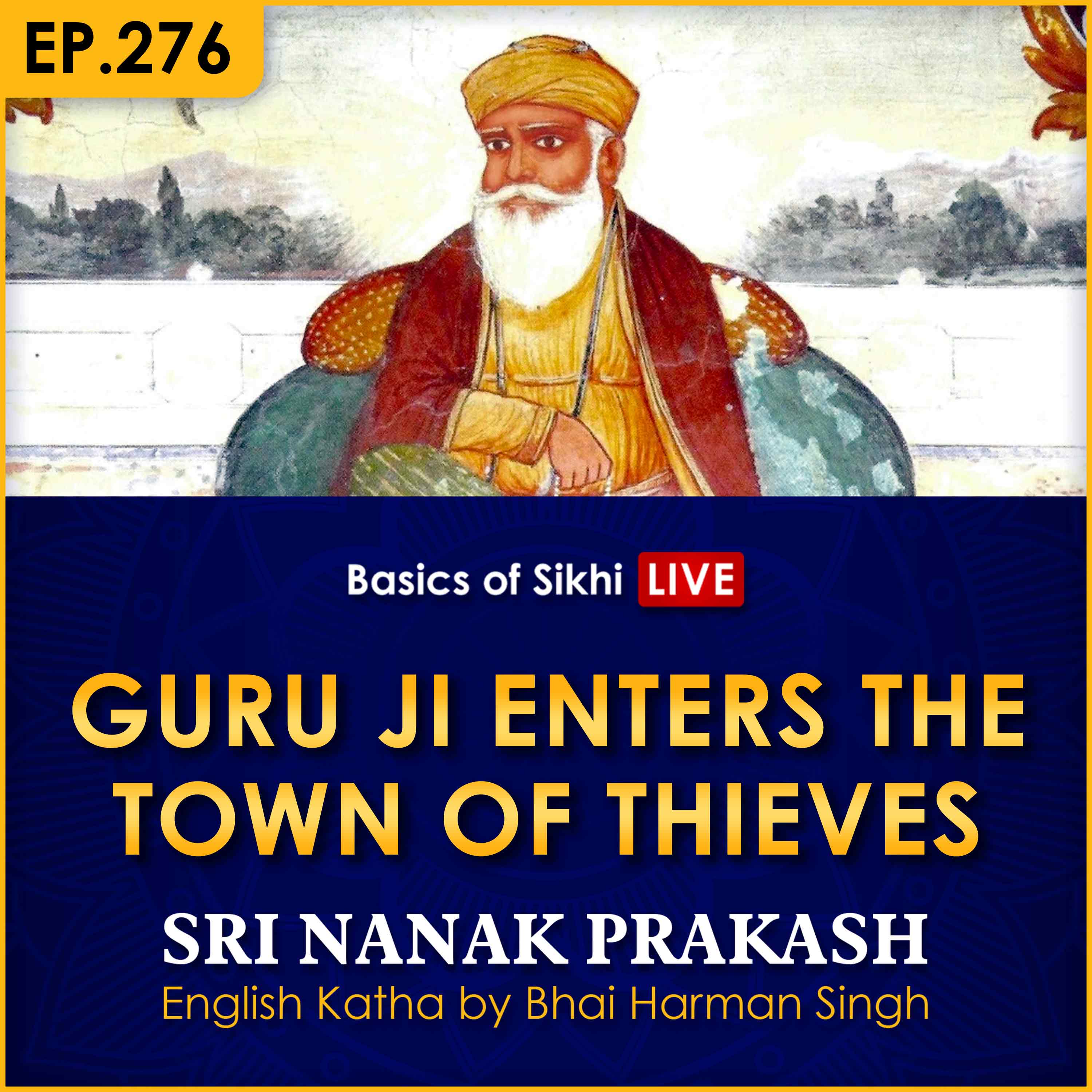 Guru Nanak Dev Ji tells Bhai Mardana Ji that that place where Naam isn't present, that place is seen as wilderness - even though it may be filled with people and luxuries. They then enter a town in the middle of nowhere, filled with thieves. Guru Ji teaches the thieves a life lesson and Guru Ji turns Bhai Bala Ji into a 16 year old newly married-looking male covered in luxuries to attract the thieves and made Bhai Mardana Ji the personal Doom (musician).