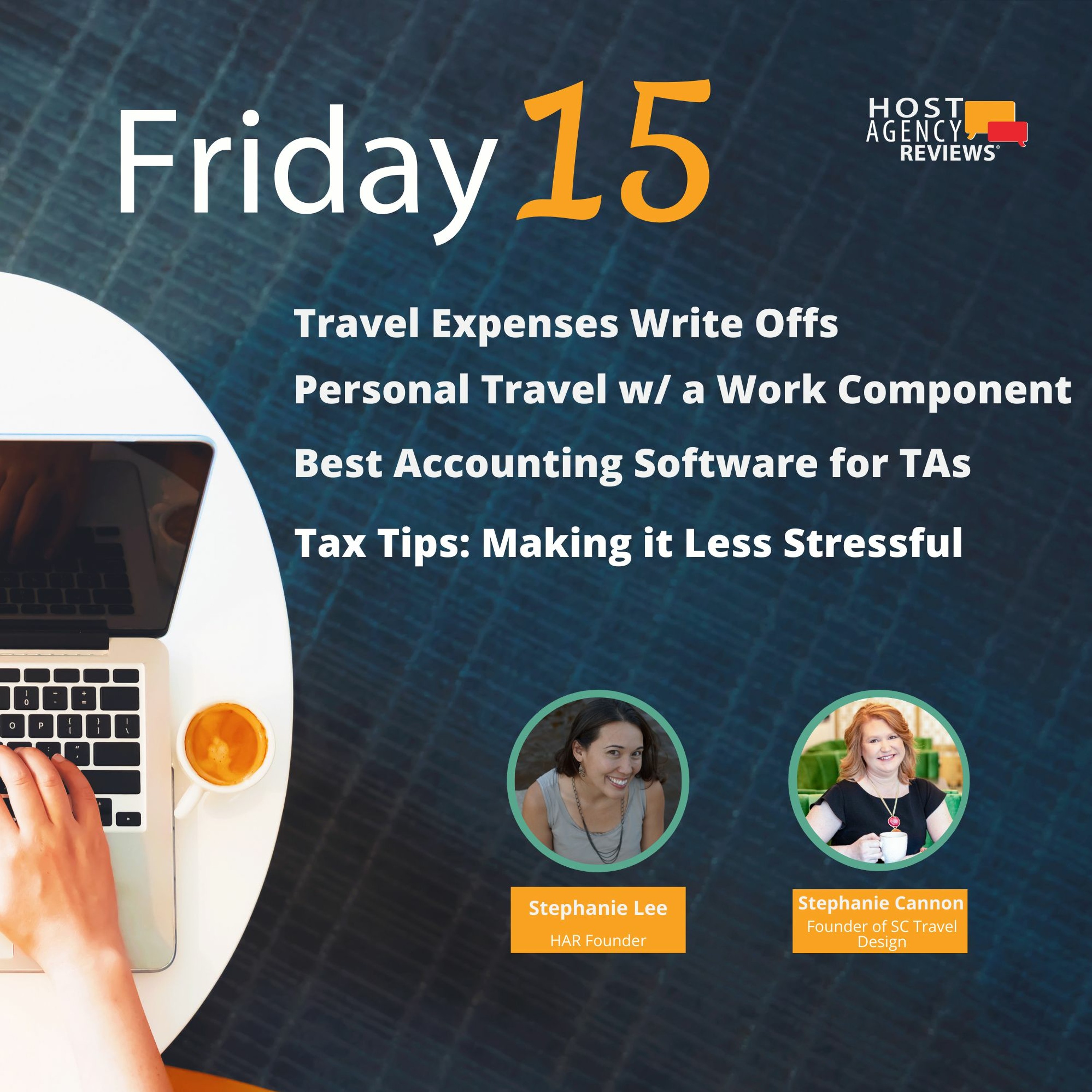 Welcome to Friday 15! Today Steph chats with Stephanie Cannon, founder of SC Travel Design, on travel expense write offs, personal travel with a work component, accounting software, a gives some tax tips.