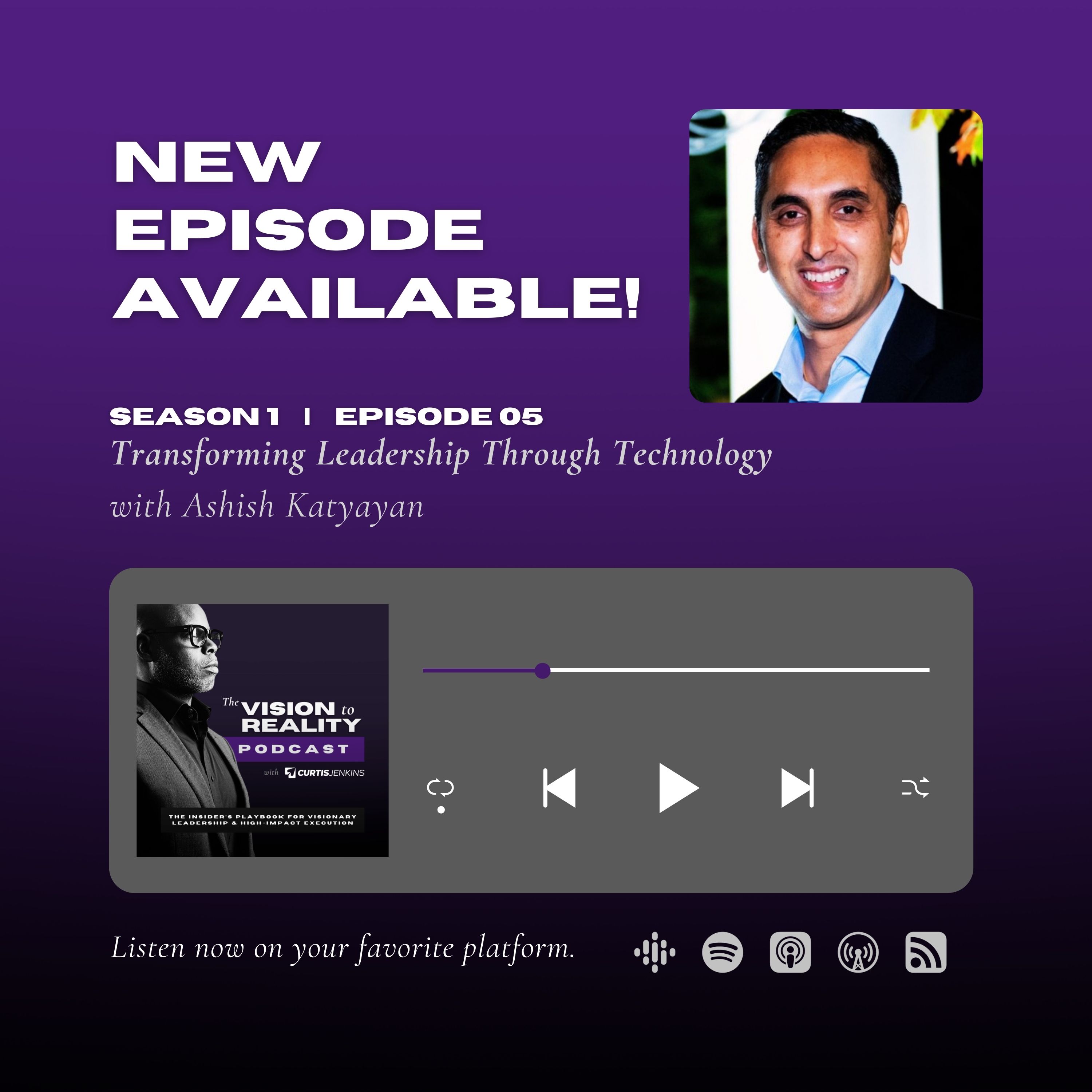 In this episode of the Vision to Reality podcast, Curtis Jenkins speaks with Ashish Katyayan, CEO of Katbotz, about the transformative power of technology, talent, and innovation in the workplace. Ashish shares his philosophy on leadership, the importance of nurturing future leaders, and the role of AI in solving real business problems. He emphasizes the need for continuous learning and the significance of building a strong team culture. The conversation also touches on personal growth, overcoming adversity, and the influence of mentors in shaping one's career.