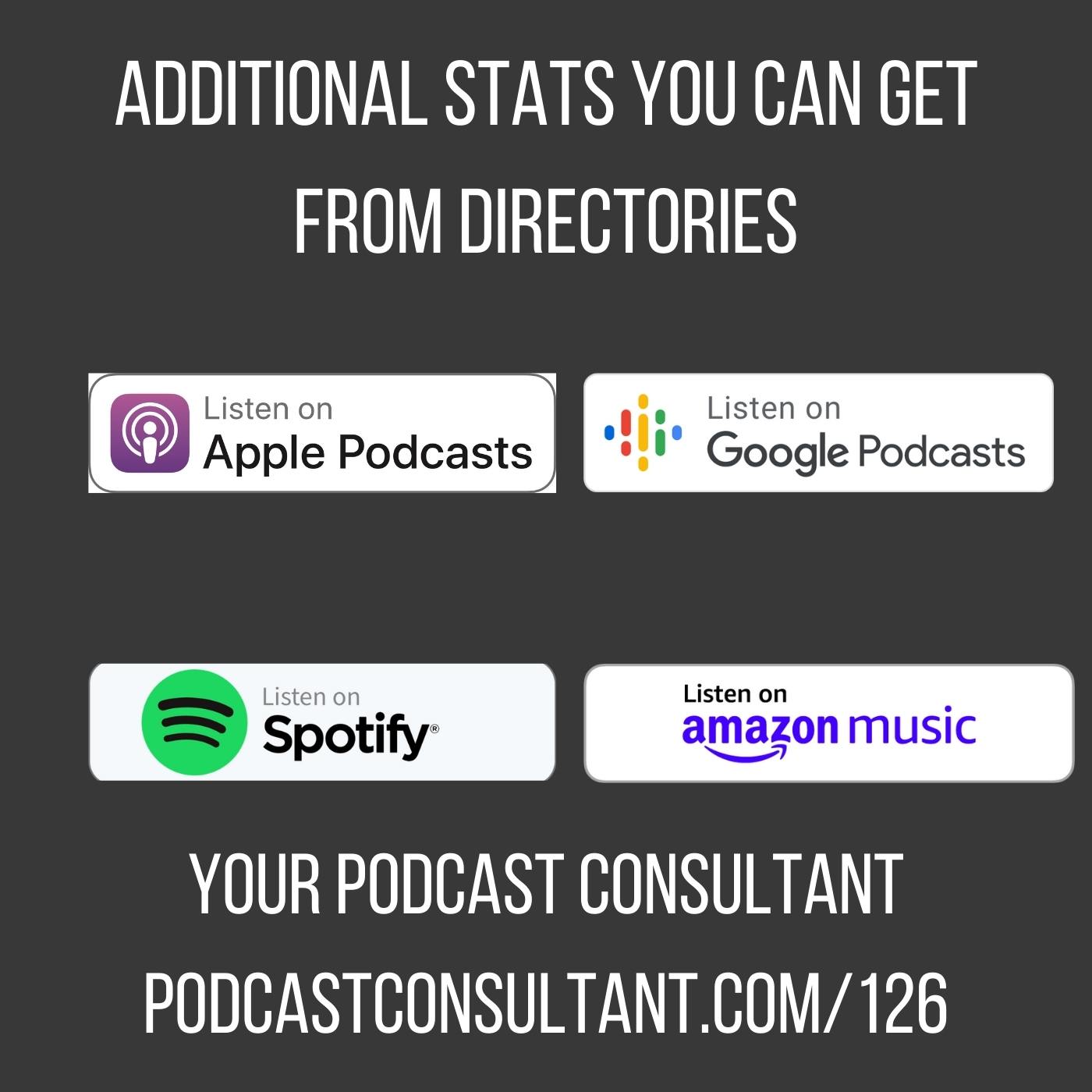 2. You can get additional stats from places like Apple Podcasts, Google Podcasts, Spotify, and Amazon.