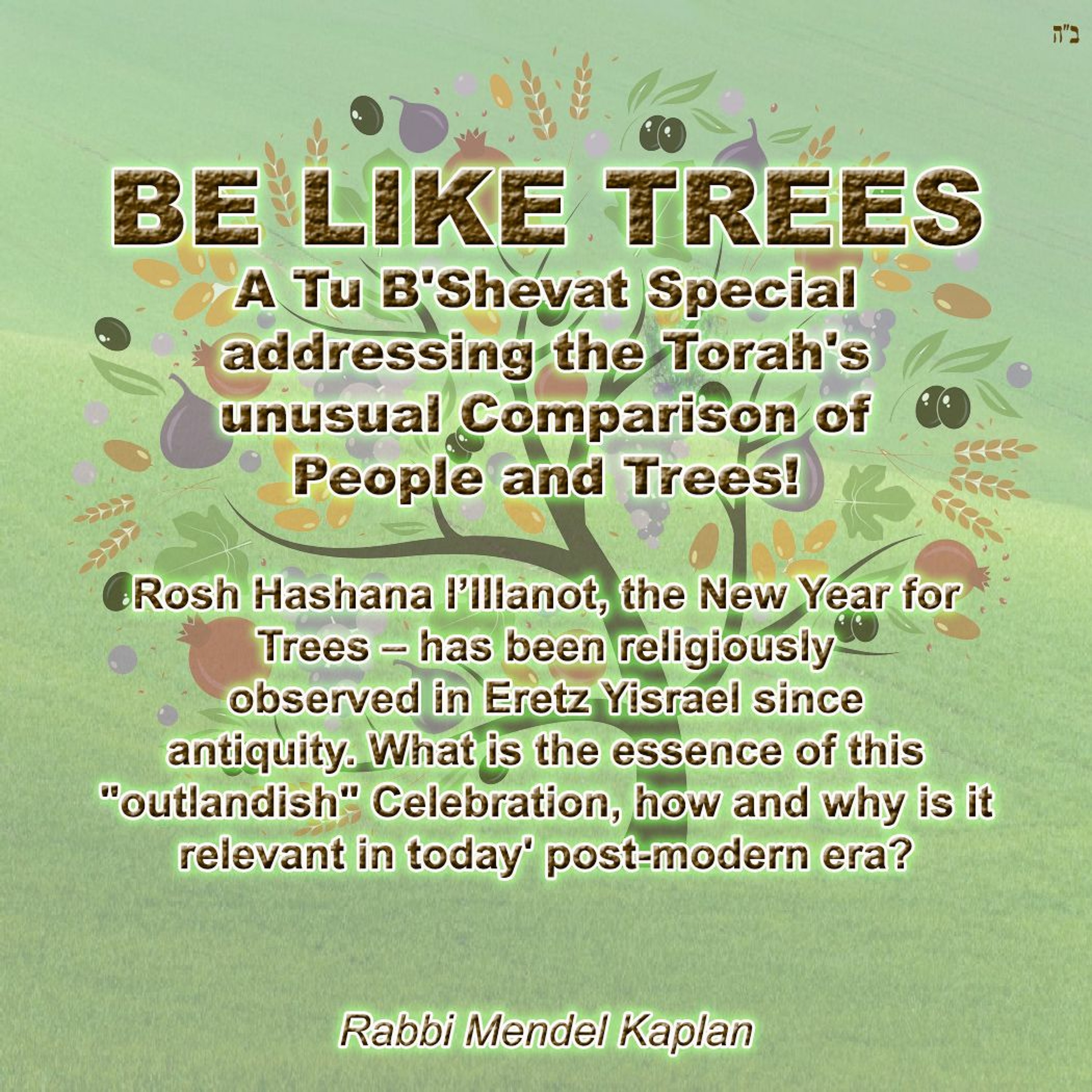 We the Jewish People have been observing a Rosh Hashana for Trees – in the middle of the winter -- since arriving in the Israel more than 32 centuries ago and beginning to work the land. So, to be sure, Tu B'Shvat is clearly an ancient Torah tradition that's as old as Eretz Yisrael itself. Yet as Israel is better known today for High Tech Start-ups than Agriculture should it still occupy that much space on our National Hard Drive? To explain why we persist in marking this date, many invoke a Talmudic teaching on a verse in Deuteronomy (20;19) protecting trees from destruction in warfare. Our Sages saw it as (in effect) likening a human being to a tree. However, instead of clarifying our seemingly inexplicable obsession with this minor anniversary, it only serves to exacerbate the question: Why indeed would the Torah Compare People to Trees?! This deeply insightful, and emotionally evocative presentation will offer a lucid overview of what this holiday is (and isn't) about, as it answers the questions and provides powerful lessons about life, and life-long learning. Here you will discover invaluable information on Tu B'shvat, as well as an effective strategy to identify truly ethical and inspirational spiritual leadership and guidance -- perhaps more relevant than ever in our confusing day and age! Rabbi Mendel Kaplan