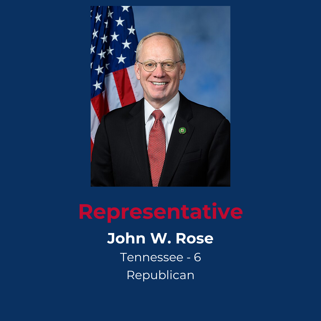 Elected to Congress in 2018 to replace Diane Black, Rose has established himself as a staunch fiscal conservative. He sits on the House Financial Services Committee, where he is a vocal advocate for the "fintech" industry and crypto innovation, arguing that the U.S. must lead in digital assets to remain the world's financial superpower. Simultaneously, he uses his seat on the Agriculture Committee to protect the interests of Middle Tennessee farmers, particularly regarding cattle regulations and broadband expansion in rural areas.