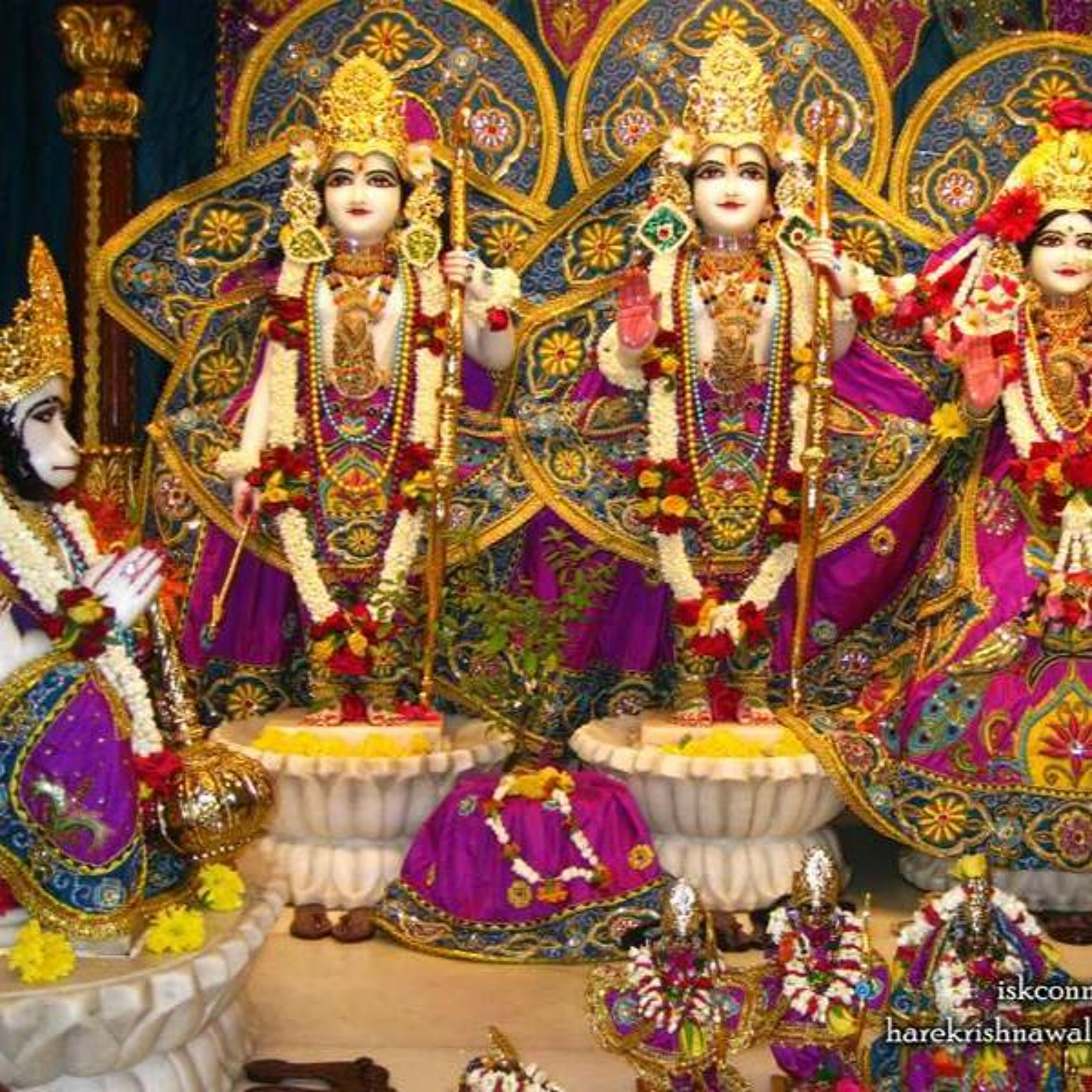 The residents of Ayodhya, it is described that they were singing, they were dancing, they were just joyful. eating nice prasad, distributing nice prasad, giving gifts, receiving gifts because everyone’s minds were immersed only in the beautiful form of this child, Rama. They completely forgot the miseries of material existence. As they began to grow older, it is described they began to learn how to walk and the three mothers, Sumitra, Kaikeyi and Kausalya, their love just knew no bounds and Dasaratha Maharaja, sharing that love, he was perfectly satisfied 24 hours a day simply seeing the beautiful form of Rama. Indeed, every inhabitant of Ayodhya shared the same love for Rama. As He grew older, He become most learned in the Vedas, the most expert archer, the most expert charioteer and the whole city was simply awaiting the auspicious day when he would be coronated as King.