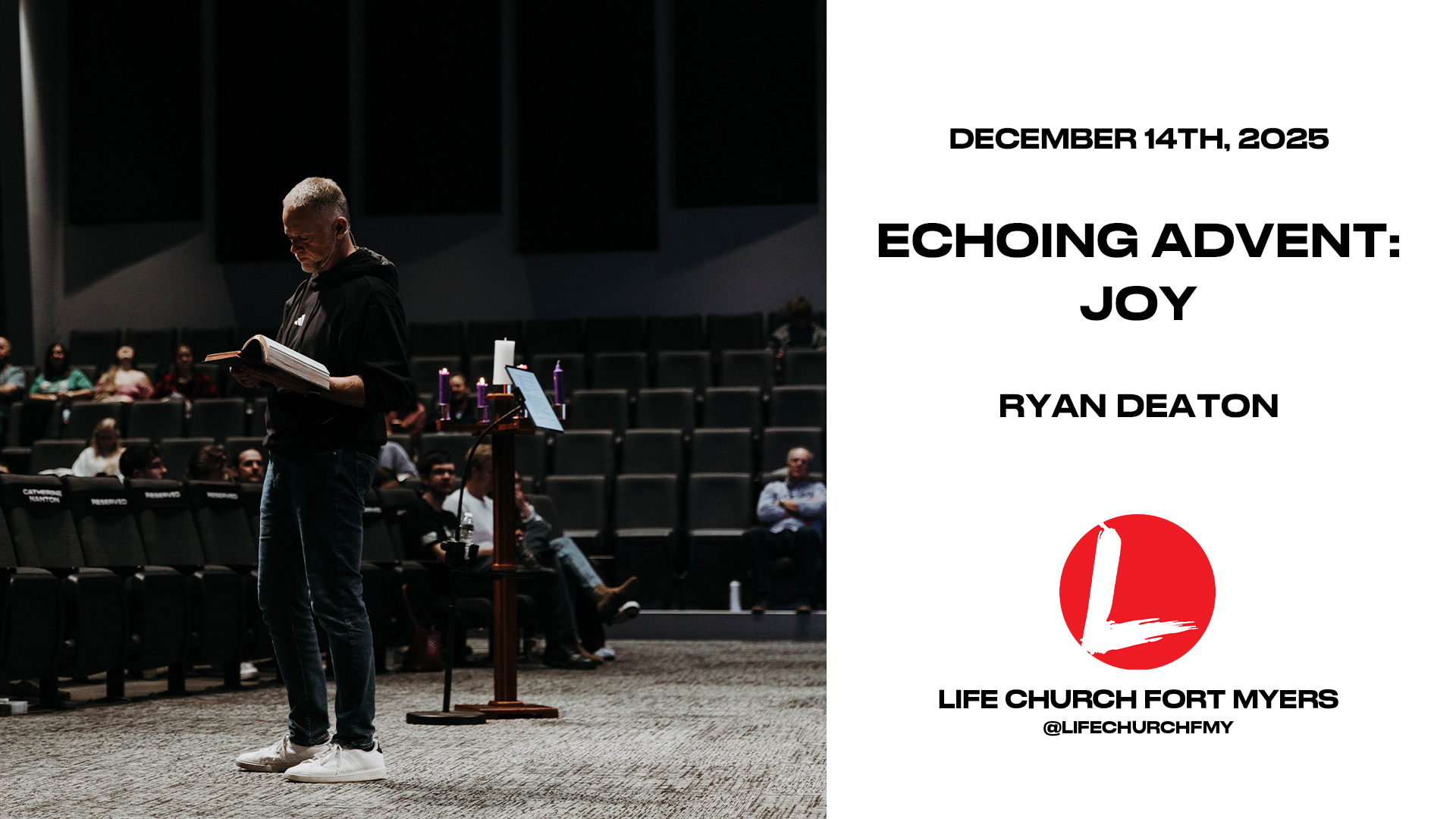 Pastor Ryan Deaton delivers a message, "Joy" from the series "Echoing Advent" at Life Church in Fort Myers, Florida. (Sunday, December 14th, 2025 - 11:00AM) For more information, visit our website at: http://www.lifechurch.net Instagram: www.instagram.com/lifechurchfmy Facebook: http://www.facebook.com/LifeChurchFMY Vimeo: http://www.vimeo.com/lifechurchfmy