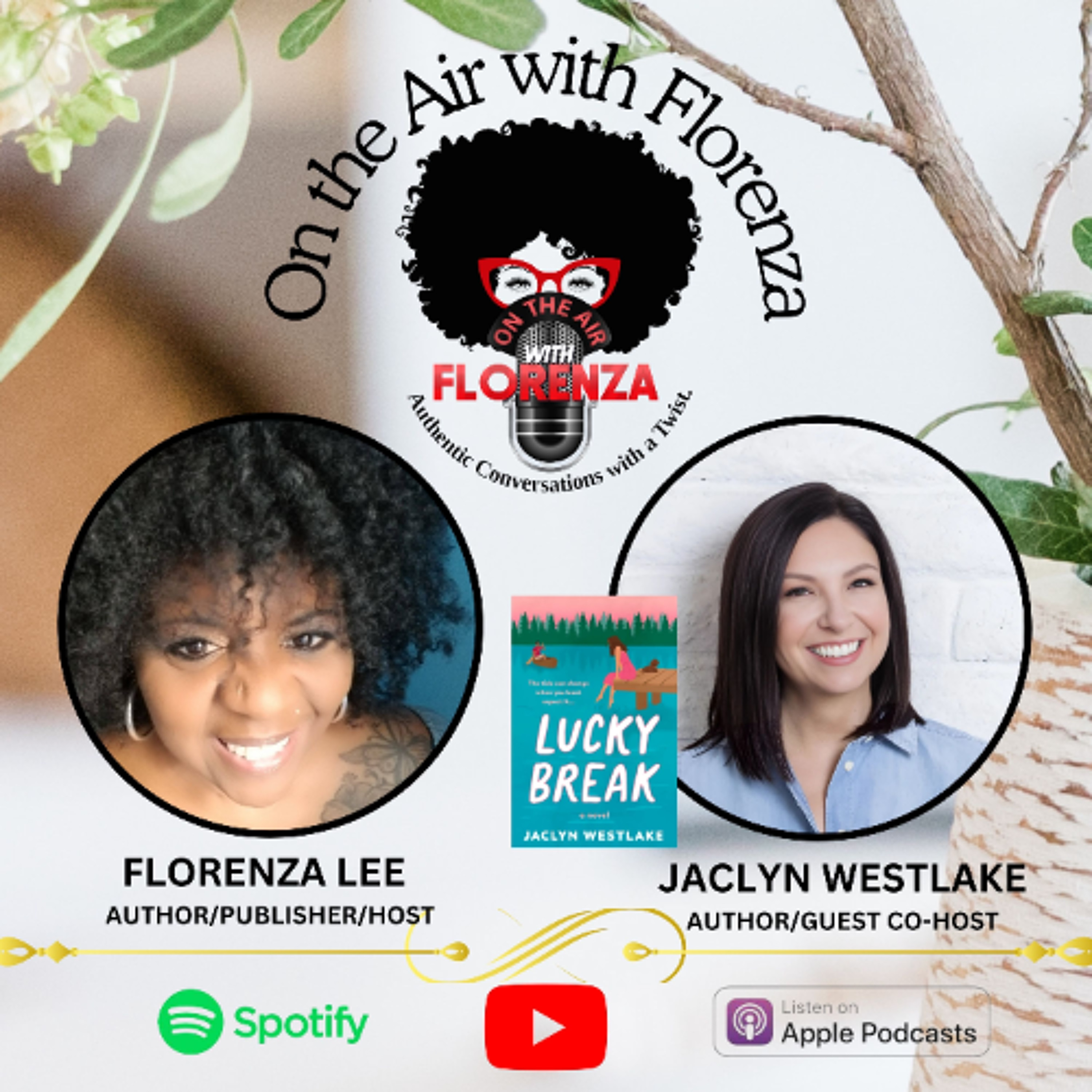 #OnTheAirWithFlorenza #LuckyBreak #JaclynWestlake #BookTalk #AuthorInterview #ReadersLife #FlorenzaDenise Lee