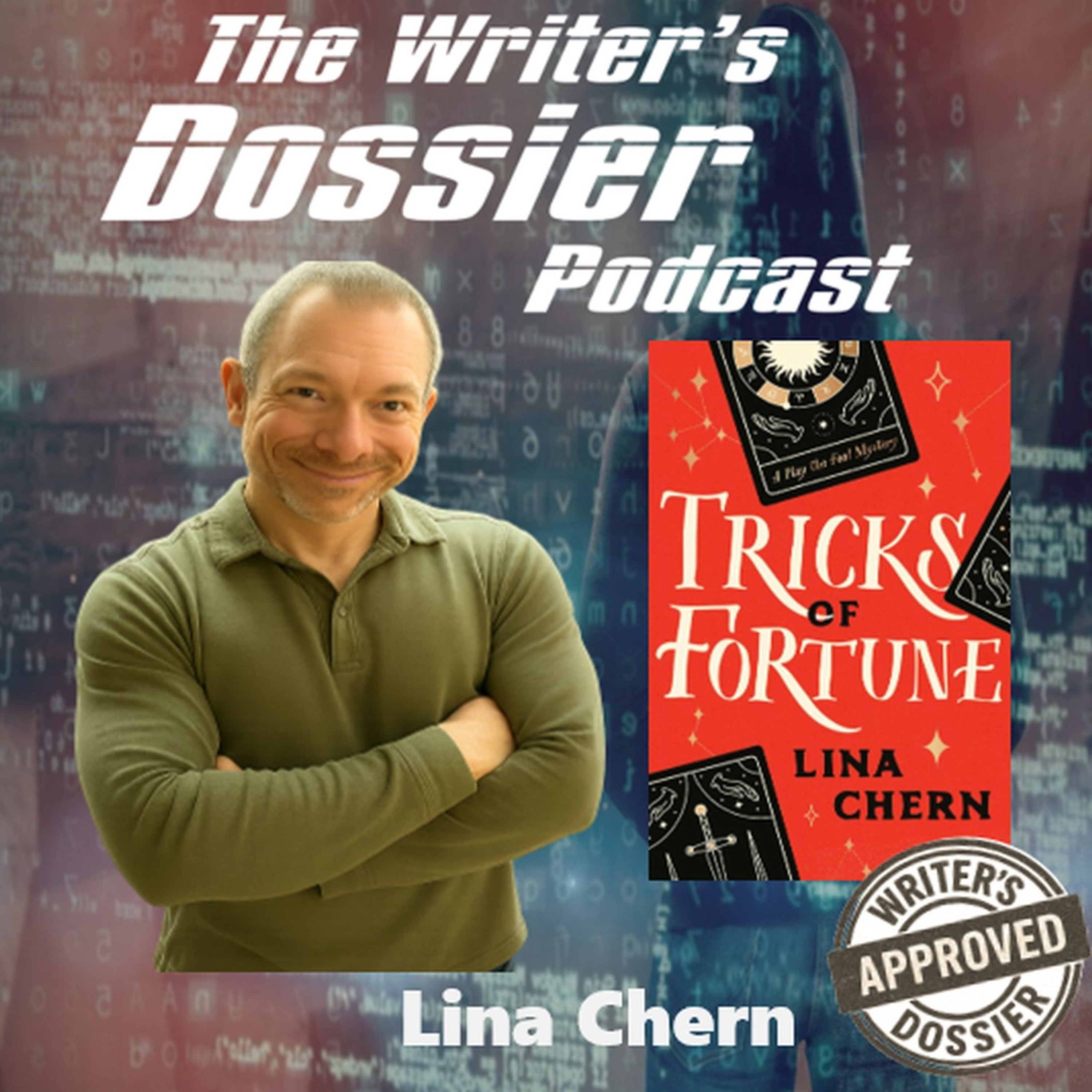 Today in the interrogation chair, it's Lina Chern, author of PLAY THE FOOL, and out now, TRICKS OF FORTUNE. Hear from Lina how she uses Tarot cards to get out a writing jam, what she thinks about connecting with the writing community, how she wrote questions for a TV game show, and one more steamy situation we can't explain here! Get to know Lina here. Welcome, to The Dossier Podcast!