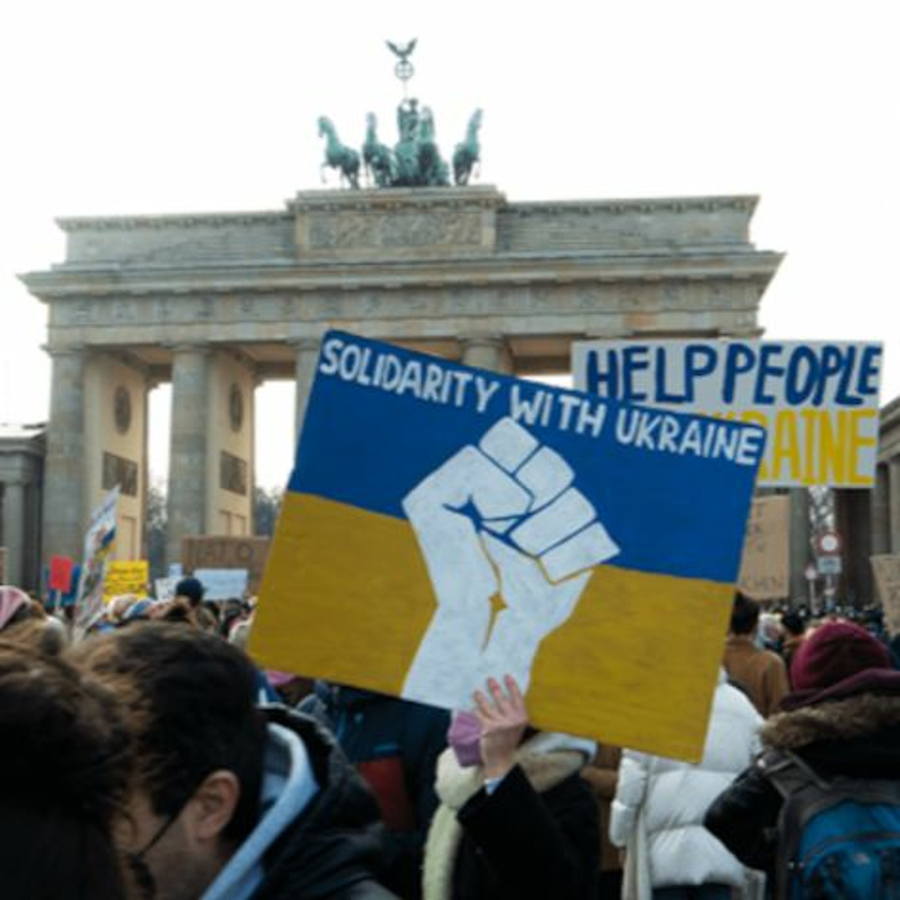 Foto: Kristina Kerber. Bildbeschreibung: Demonstrierende am 24.02.2022 vor dem Brandenburger Tor.