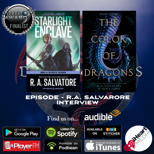Join us as we travel the lands of Toril among the Drow and visit the dazzling shores of Honce the Bear in the world of Corona. Once again, we have the wonderful opportunity to have author R.A. Salvatore on the shows again to talk about his latest novel Starlight Enclave and his new YA novel co-written with Erika Lewis, The Color of Dragons.