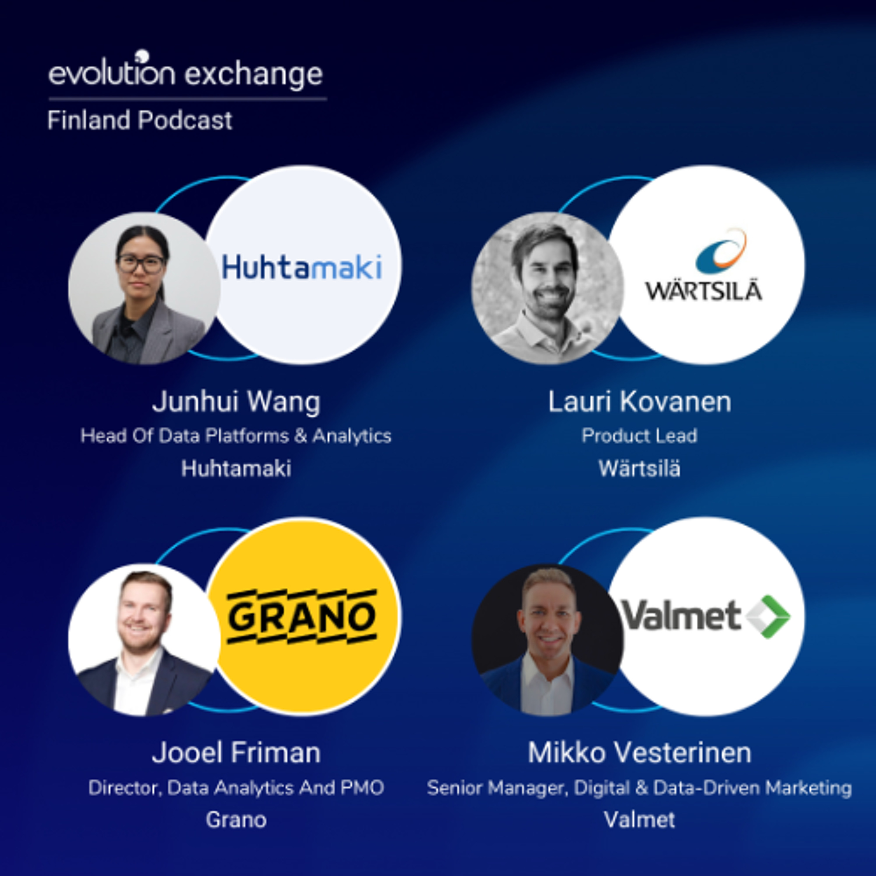 Luke Vickers hosts a deep dive into the power of data with industry experts. Junhui Wang, Head Of Data Platforms & Analytics at Huhtamaki, Lauri Kovanen, Product Lead at Wärtsilä, Jooel Friman, Director of Data Analytics and PMO at Grano, and Mikko Vesterinen, Senior Manager of Digital & Data-Driven Marketing at Valmet, discuss leveraging data for business value. They share insights on data platforms, analytics-driven strategies, and digital transformation, providing listeners actionable guidance on maximizing insights, improving decision-making, and driving enterprise growth.