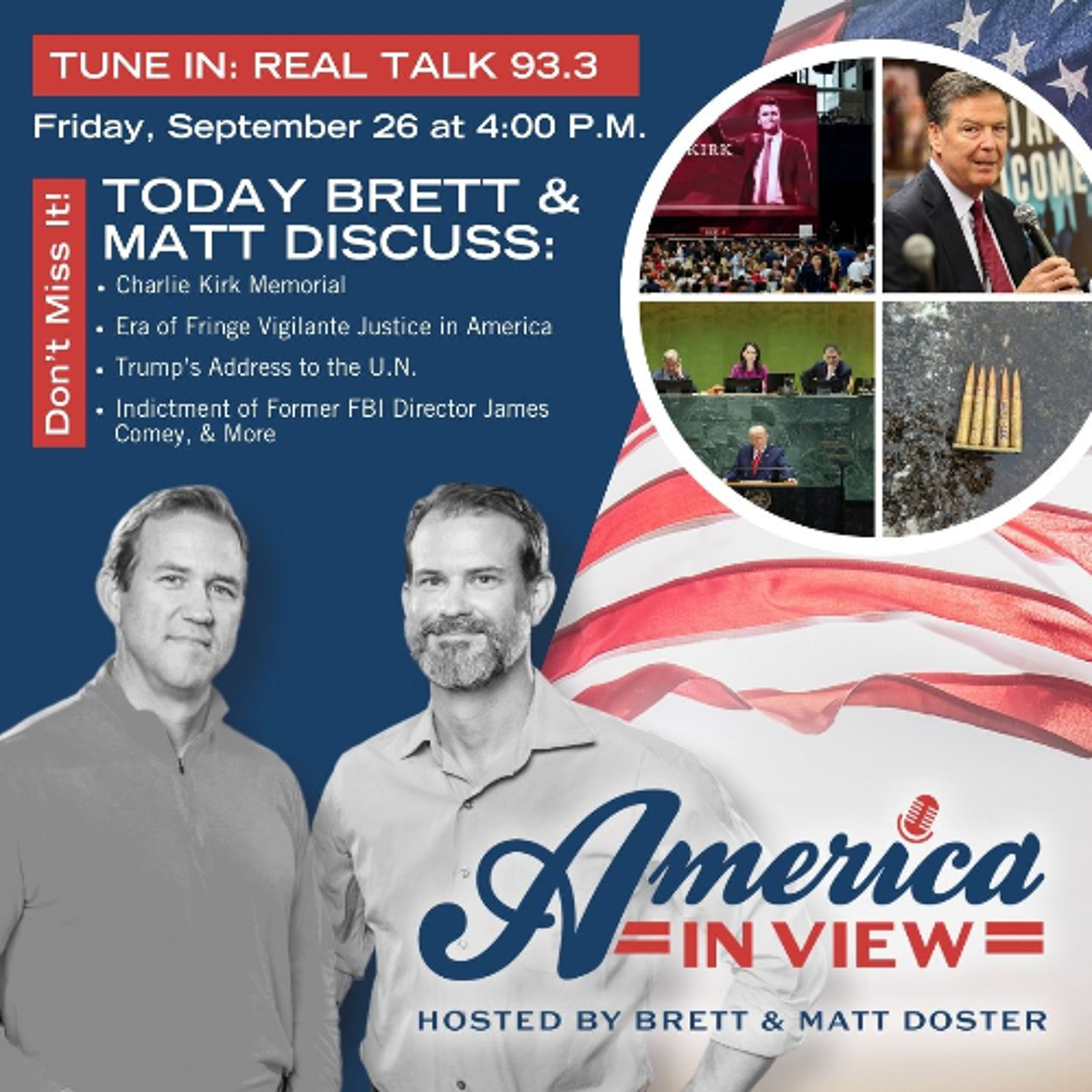The week started off with the Charlie Kirk memorial in Arizona, which was a powerful tribute to Charlie’s life and legacy. Brett and Matt also discuss the era of fringe vigilante justice that seems to have taken over America, President Trump’s address to the U.N., TikTok heading to U.S. ownership, potential for a federal government shutdown—and finally a deep dive into the indictment of former FBI Director James Comey.