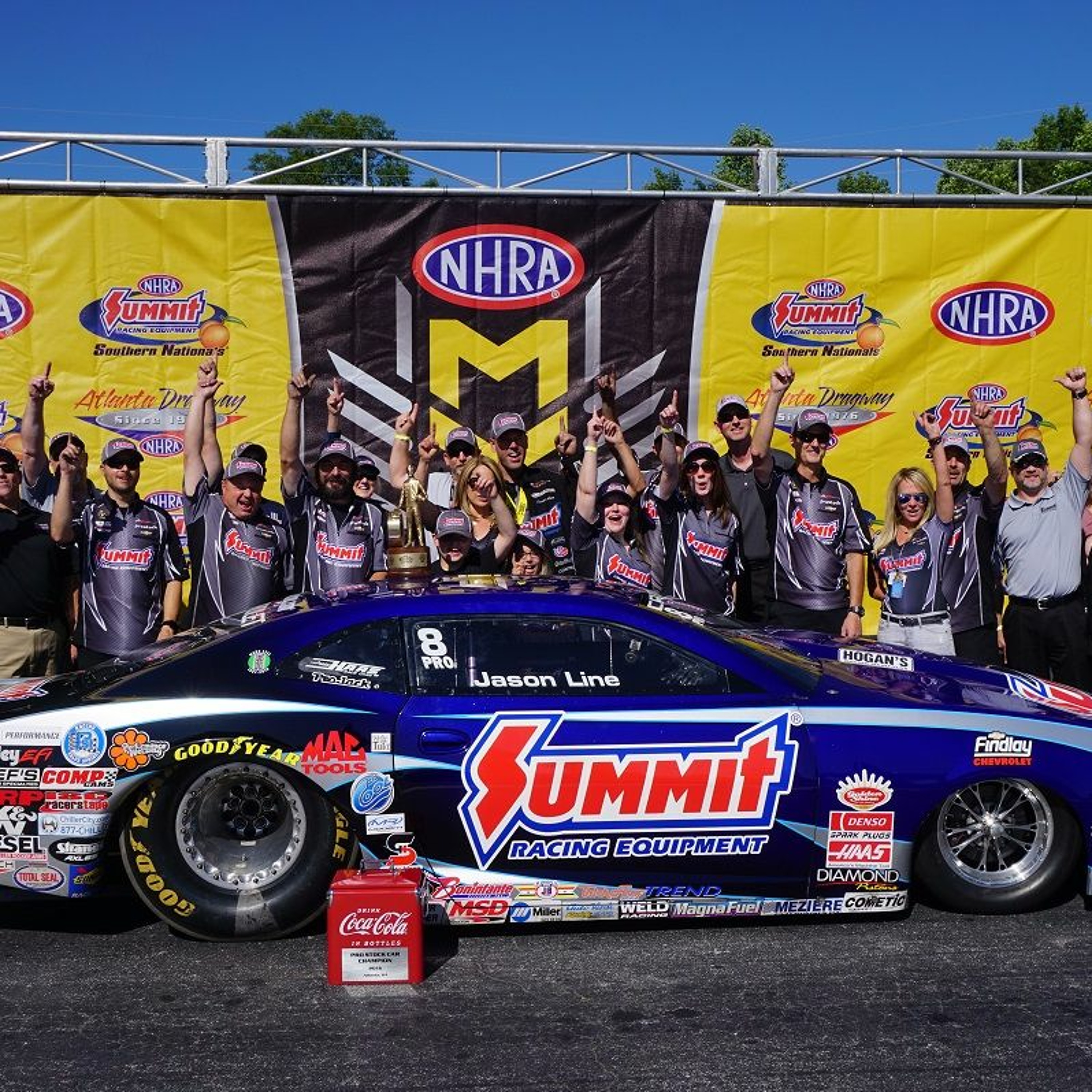 Jason Line and Jim Greenleaf from Summit Racing, after Jason's win at the Summit Racing NHRA Southern Nationals.