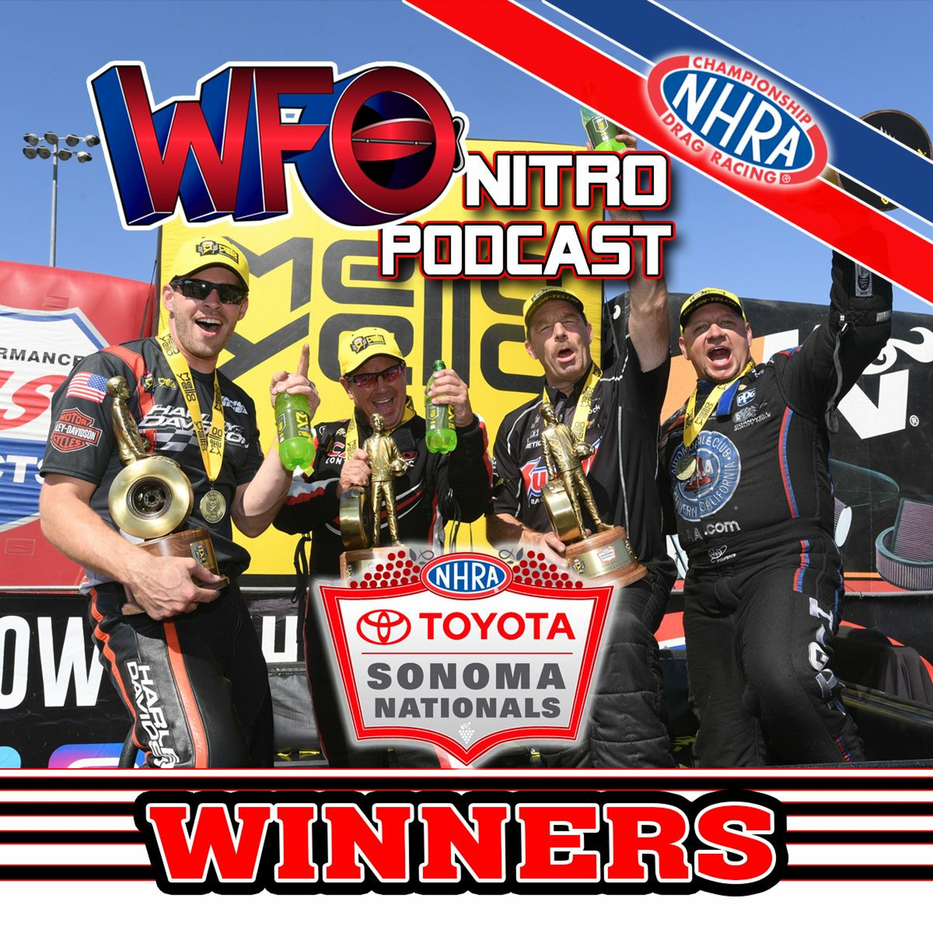 NHRA Sonoma Nationals Winners Edition featuring Robert Hight, Billy Torrence, Greg Anderson, Andrew Hines, and Bo Butner! Robert Hight discusses his 50th NHRA win. Billy Torrence gives his secrets of success. Greg Anderson discusses his lucky charm. Andrew Hines talks about sweeping the weekend. Bo Butner discusses racing while wearing the new WFO T-Shirt! NHRA's Alan Reinhart recaps the race and discusses his fall from the stage during pre-race. Host Joe Castello gives his views during the final segment.