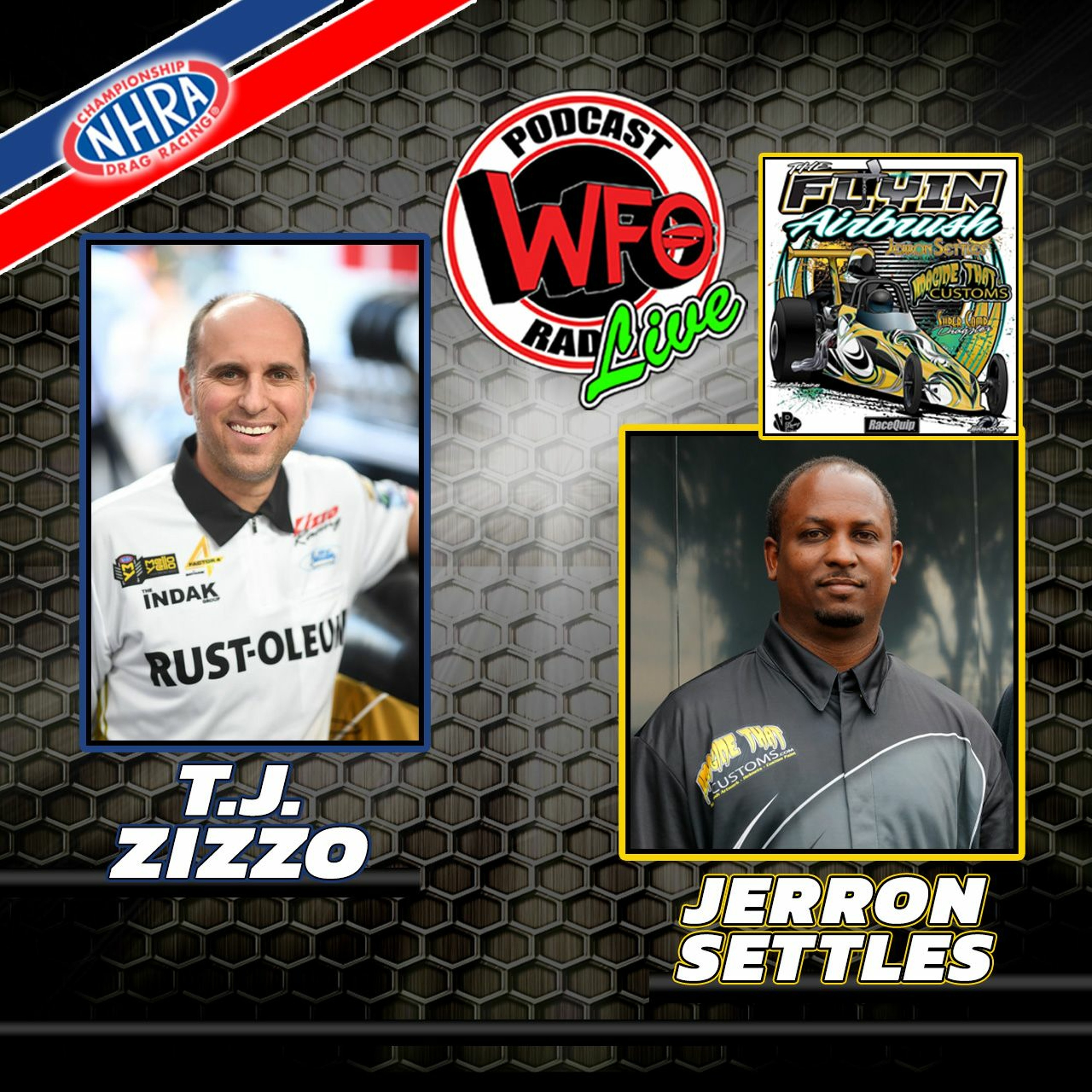 NHRA Top Fuel finalist, T.J. Zizzo, joins WFO Joe to discuss his road to the final and his life in drag racing. Jerron Settles, known as "The Flying Airbrush" discusses his art, and his passion for drag racing. You will see some amazing paint schemes! Start a watch party!