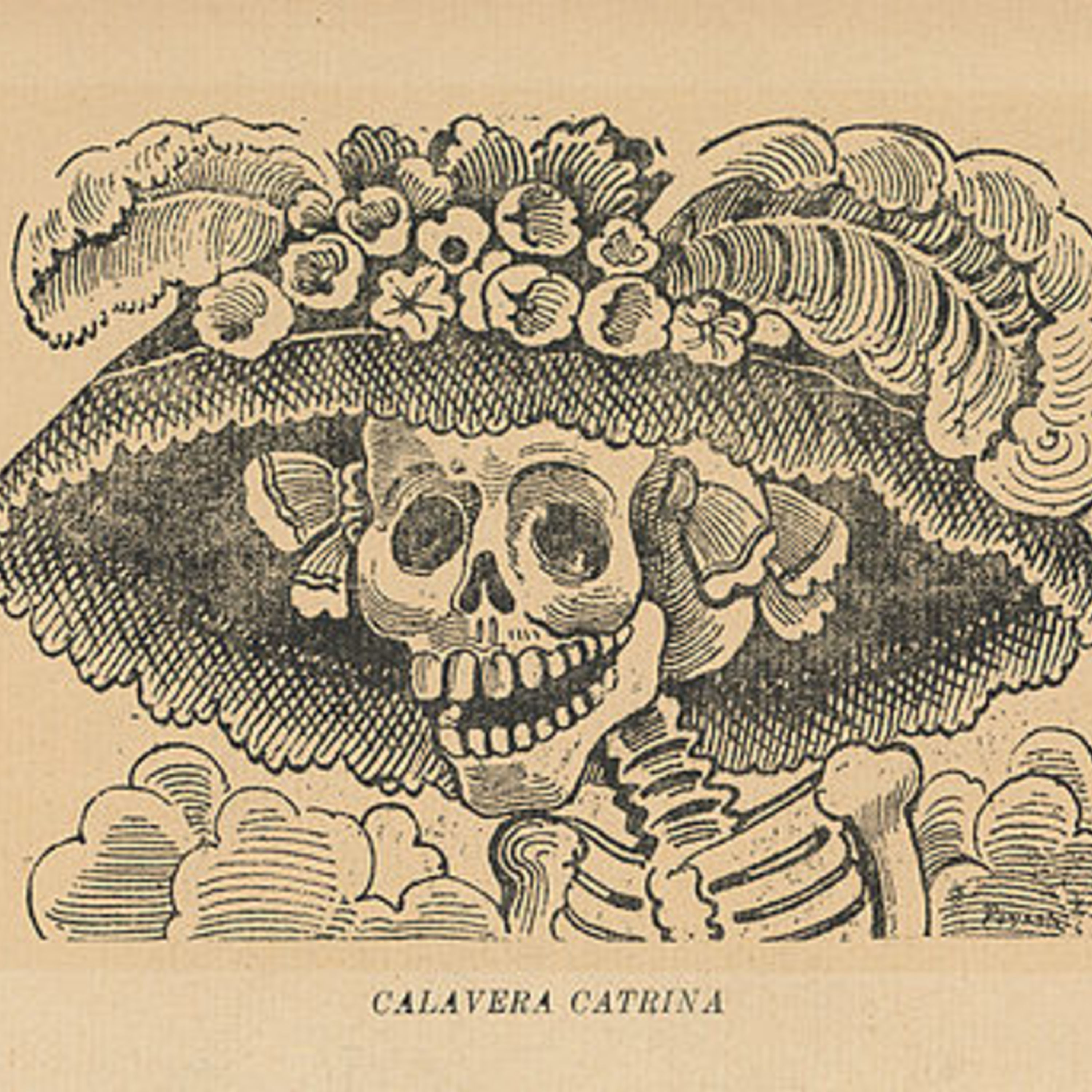 *Calavera de la Catrina (Skull of the Female Dandy), from the portfolio 36 Grabados: José Guadalupe Posada, published by Arsacio Vanegas, Mexico City, c. 1910 [Public Domain]