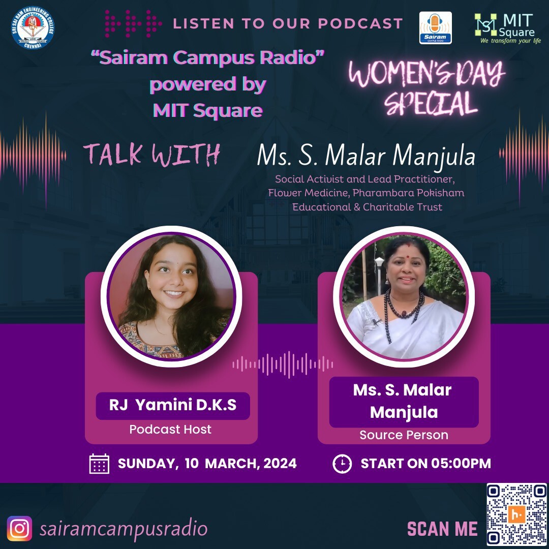 Check out our latest episode Women's day Special Talk with Ms.S.Malar Manjula Stay tuned to sairam campus radio idhu daily dose of cardio