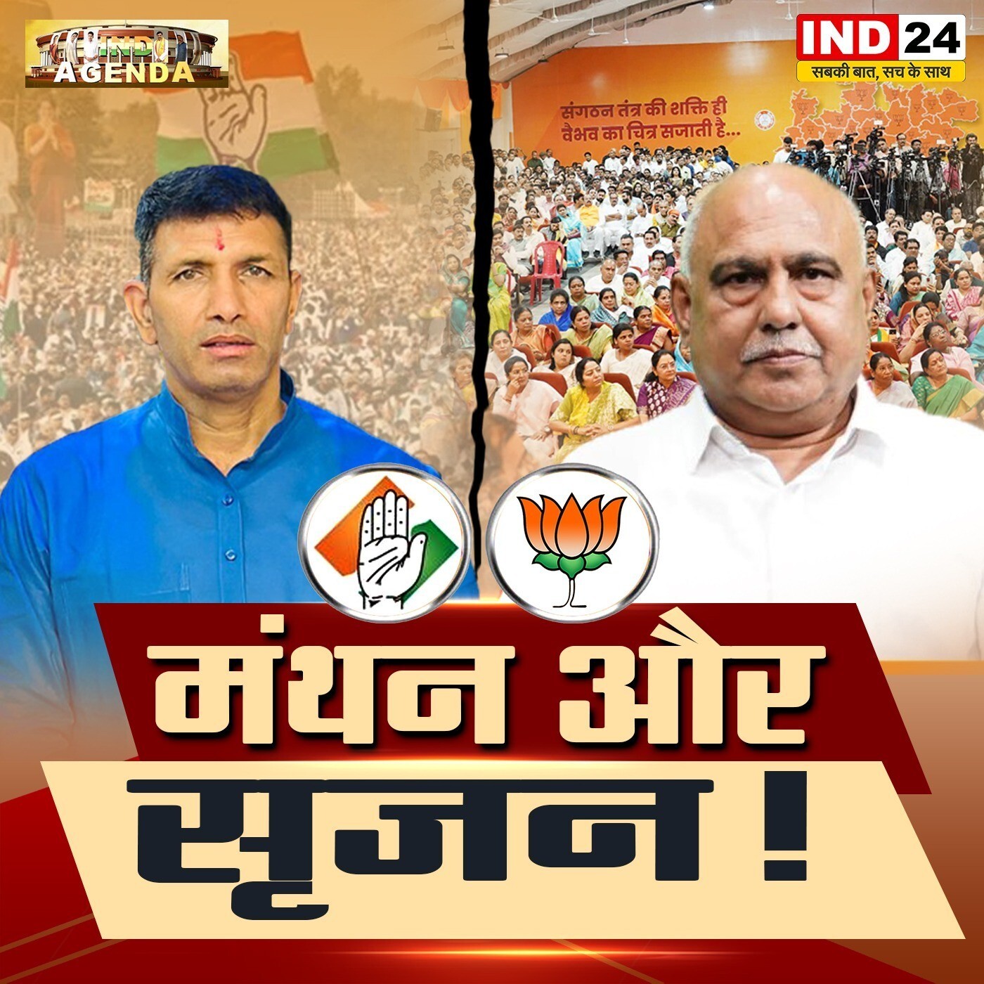 "IND AGENDA" के इस खास एपिसोड में चैनल हेड नवीन पुरोहित के साथ होगा सीधा संवाद — राजनीति के दो ध्रुव: भाजपा और कांग्रेस के प्रतिनिधि।