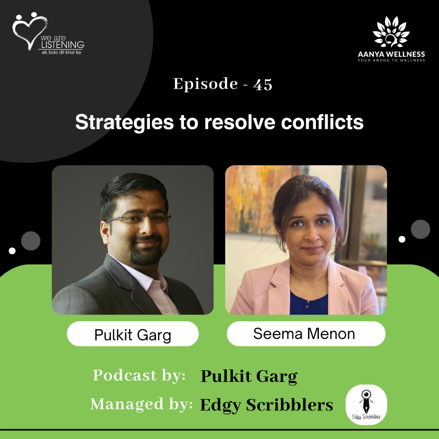 Discover the profound dynamics of parent-teenager relationships in Episode 45 of "We are listening!" Host Pulkit Garg and esteemed guest Seema Menon delve into the intricacies of fostering strong bonds and effective communication between parents and teenagers. Through thought-provoking questions, they explore the impact of social media, family structure, and generational differences on parent-teen relationships.