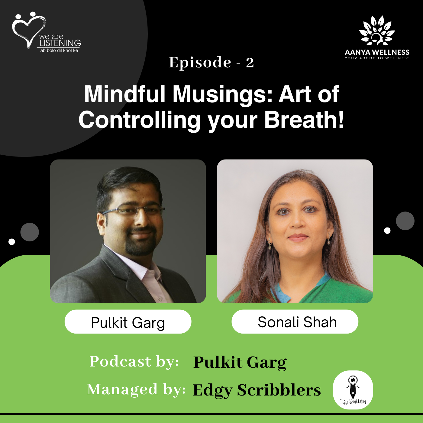 Welcome back to 'We are listening!' where our exploration of transformative practices continues. In our second episode, we dive into the enchanting world of pranayama, the art of breath control and regulation, with the insightful Sonali Shah. Join us as we unravel the significance of pranayama and its harmonious connection with other elements of yoga practice.