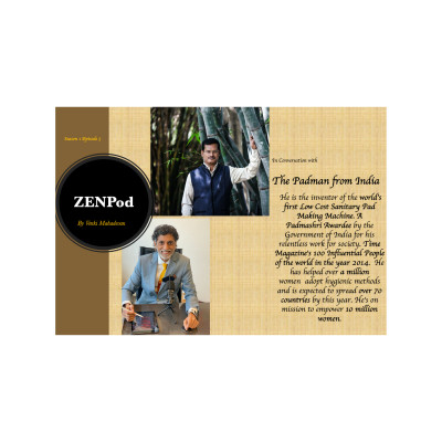 Season-1, episode 5 of “ZENPod”, featuring  Shri Arunachalam Muruganantham, the Padman of India, inventor of the world’s first Low Cost Sanitary Pad Making Machine.  He is one of Time Magazine's 100 Influential People and has been awarded the ‘Padmashri’ by Government of India .