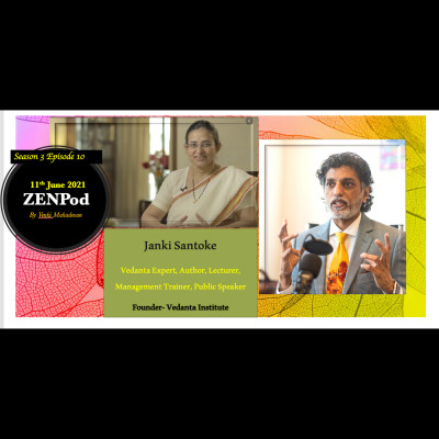 “ZENPod” Season-3, episode 10, featuring Dr. Janki Santoke, a Vedanta Expert, Author, Management Trainer, Lecturer, Public Speaker. Founder of Vedanta Institute. She has been into full time research and propogation of Vedanta for the last 30 years “Spirituality is about reaching back to your own divine self. It is defined in Vedanta itself. Our journey to re-discover our own self!”.Relation comes from two latin words, Re-legare, which means to join again.”- says Dr. Janki Santoke in his conversation with Venkatesh Mahadevan