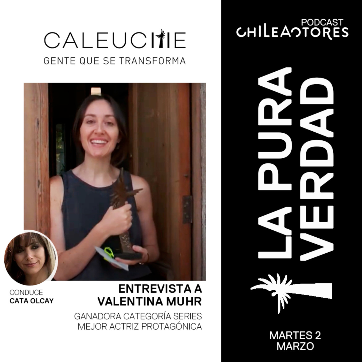 Presentamos "La Pura Verdad", especial ganadores y ganadoras de la V Edición de "Premios Caleuche, Gente que se Transforma". Hoy, Cata Olcay conversa con Valentina Muhr, Mejor Actriz Protagónica en Series por su rol en "Casa de Angelis". Acompáñanos a revivir su experiencia, conocer detalles de la construcción de su personaje y descubrir las anécdotas de su trabajo.