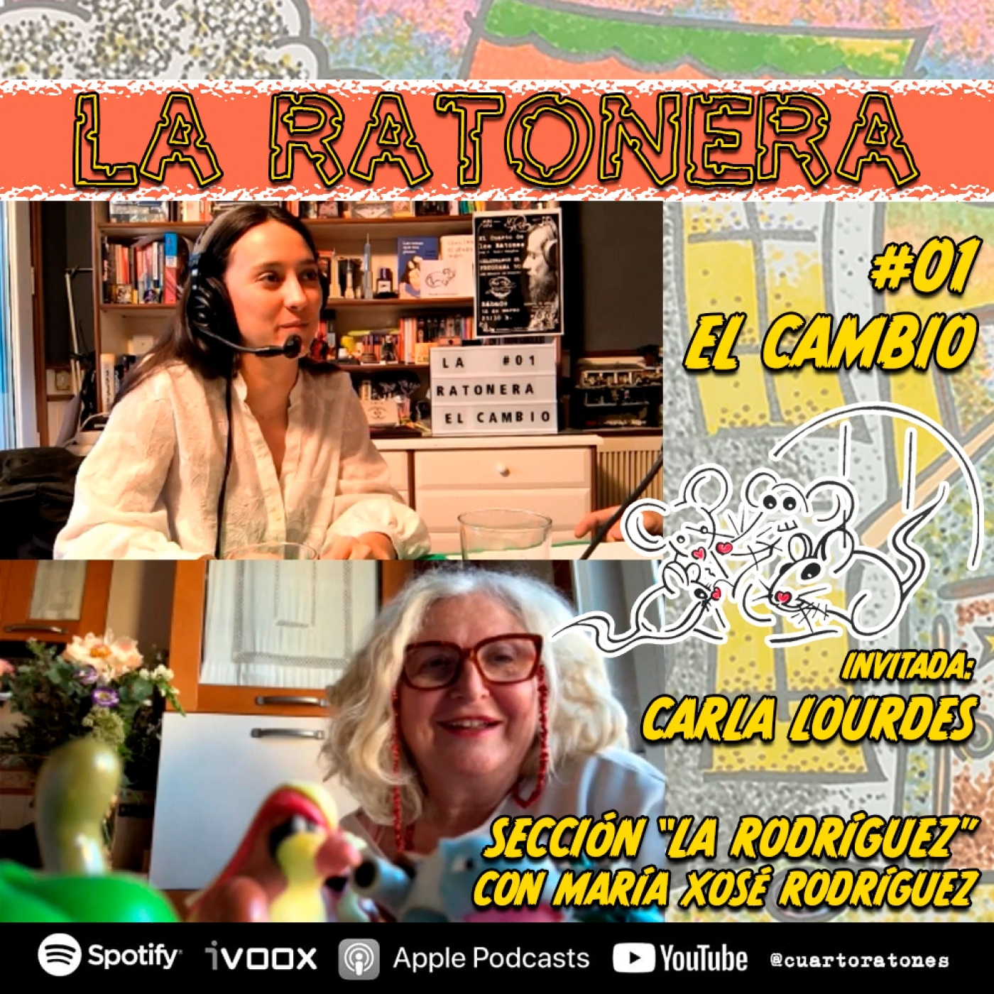 En el episodio inaugural de La Ratonera tratamos el tema de EL CAMBIO que como en cada programa nos introduce J. Pablo Sangiao en su Editorial. La primera invitada de la historia de La Ratonera es Carla Lourdes que acaba de sacar su nuevo disco "El día que descubrí el lunar de tu oreja". Ella ha atravesado muchos cambios profesionales en los últimos tiempos y viene a contárnoslos. Escucharemos algunos de los temas del album como "Cuestión de tiempo", "Equilibrio" y "El desorden". Además estrenamos nuestra nómina de colaboradores. Tendremos la presencia de María Xosé Rodríguez que tratará el tema de el cambio desde su perspectiva personal en su sección "La Rodríguez" y también contaremos con el Profesor Vázquez Onrrubias que todos los episodios nos presentará los personajes más inverosímiles relacionados con el tema del día.