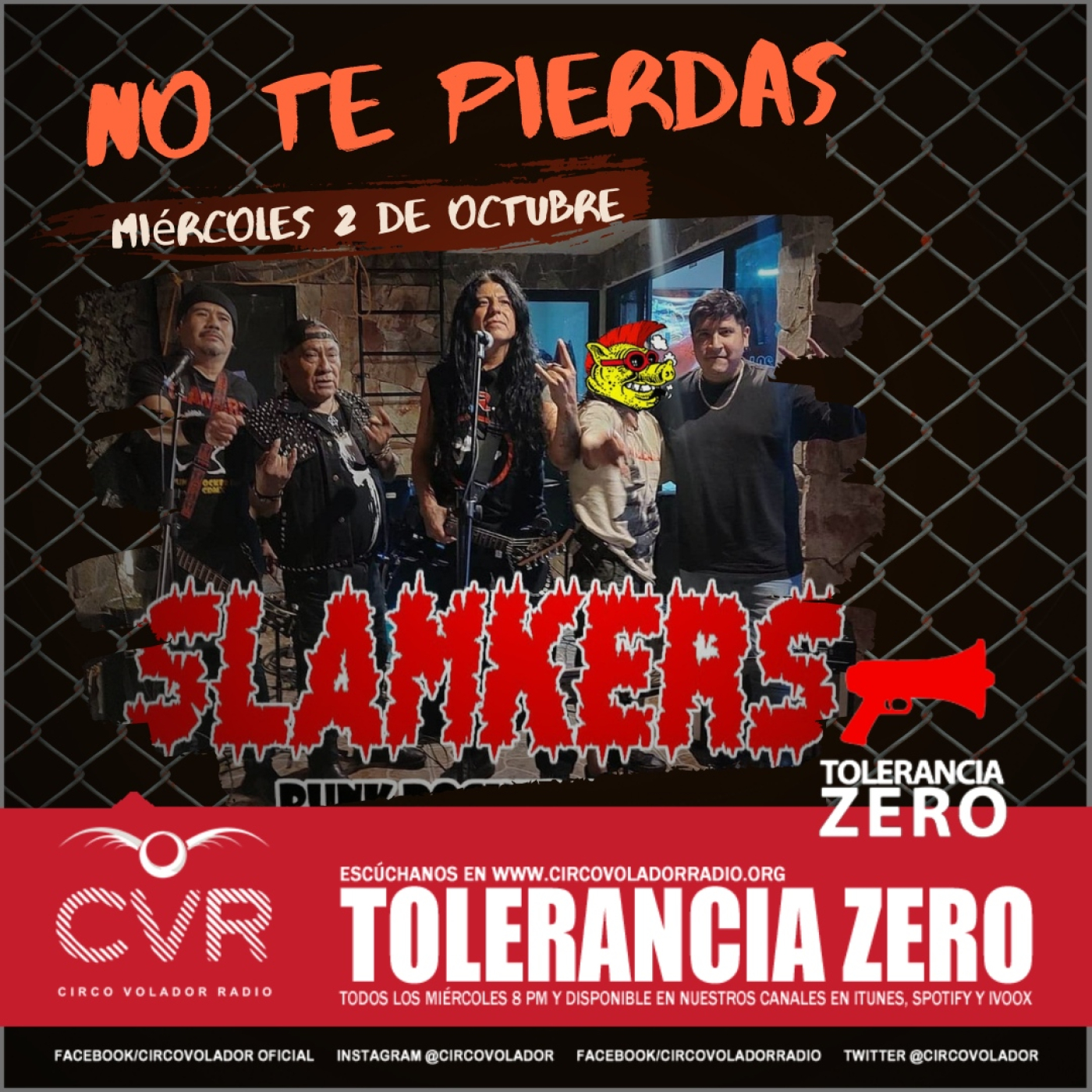 No te puedes perder la entrevista a @slamkers_oficial platicaremos sobre su trayectoria en el punk y se armará el SLAM con su material musical, solo por circovoladorradio.org 📢 yehaaa!!