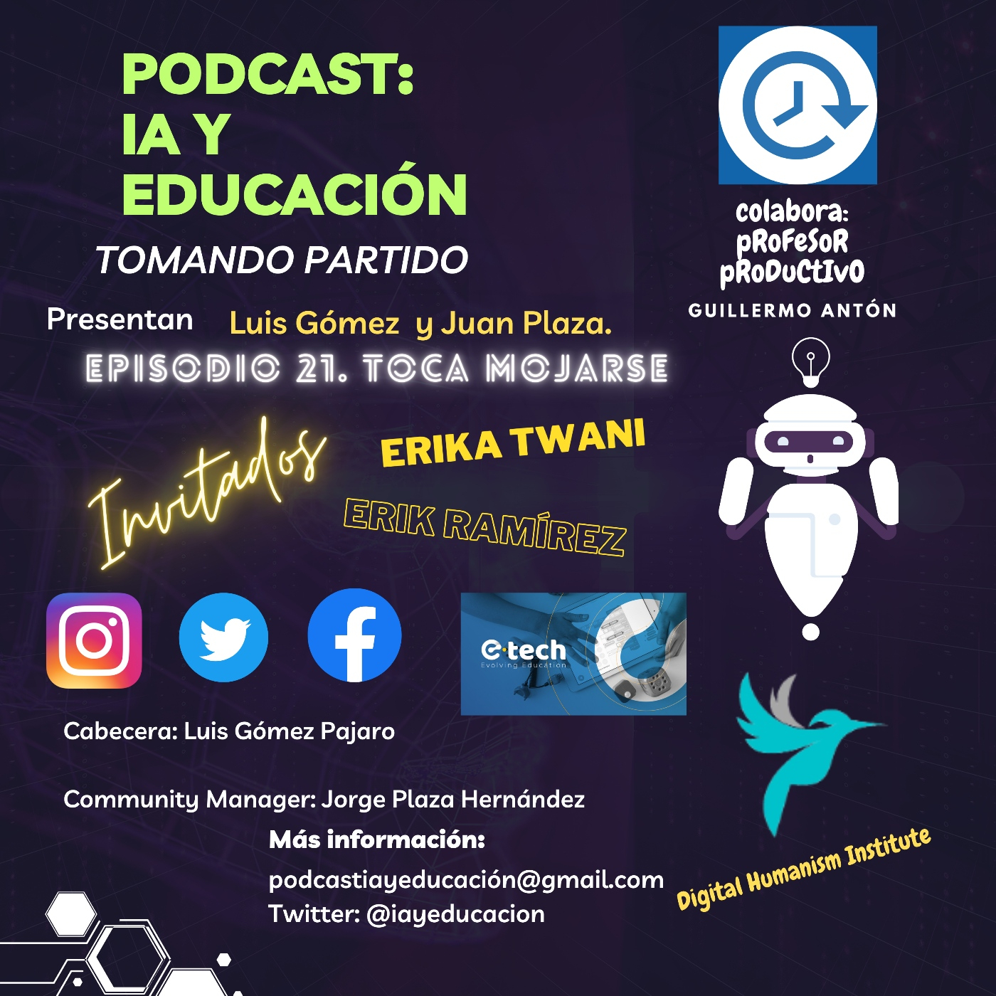 Hola a tod@s, hoy empezaremos repasando cuestiones éticas de la IA, escucharemos hablaremos con Erika Twani y Erik Ramírez, miembros honoríficos del evento ETech que se celebrará en Puebla los días 26 y 27 y 28 de septiembre, Guillermo Antón, el profesor productivo nos enseña aplicaciones de fliki y finalizaremos con el acertijo de la semana.