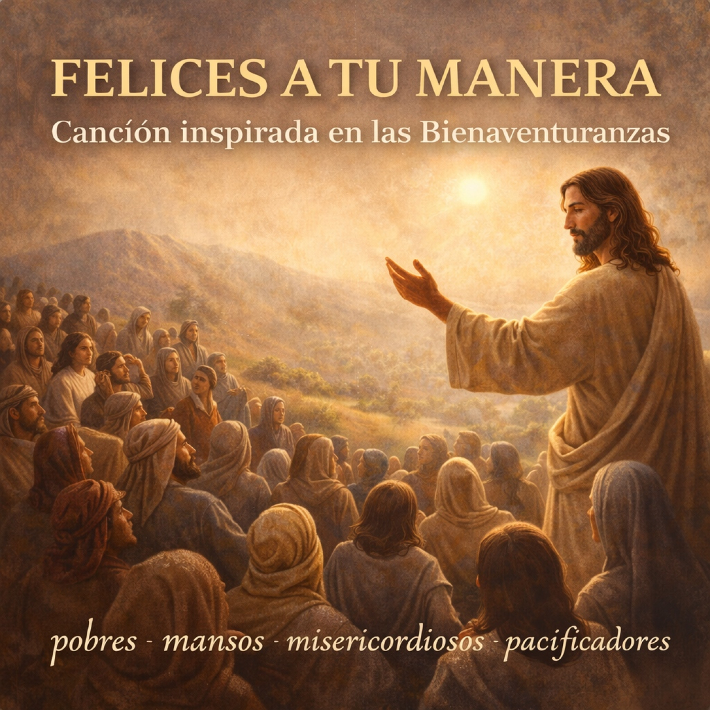 Felices a tu manera es un canto sencillo, casi una oración, para recordar que el Reino de Dios no se construye desde el poder, sino desde la mansedumbre, la justicia, la misericordia y la paz.