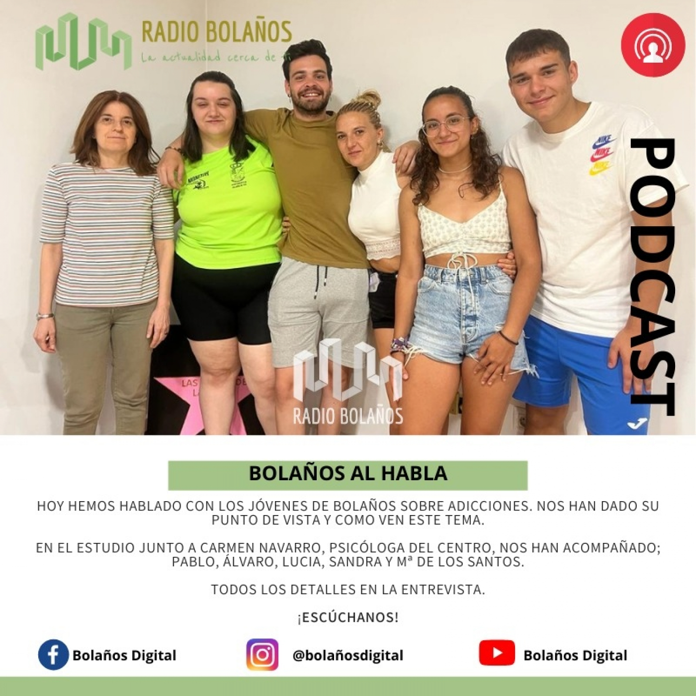 HOY HEMOS HABLADO CON LOS JÓVENES DE BOLAÑOS SOBRE ADICCIONES. NOS HAN DADO SU PUNTO DE VISTA Y COMO VEN ESTE TEMA.