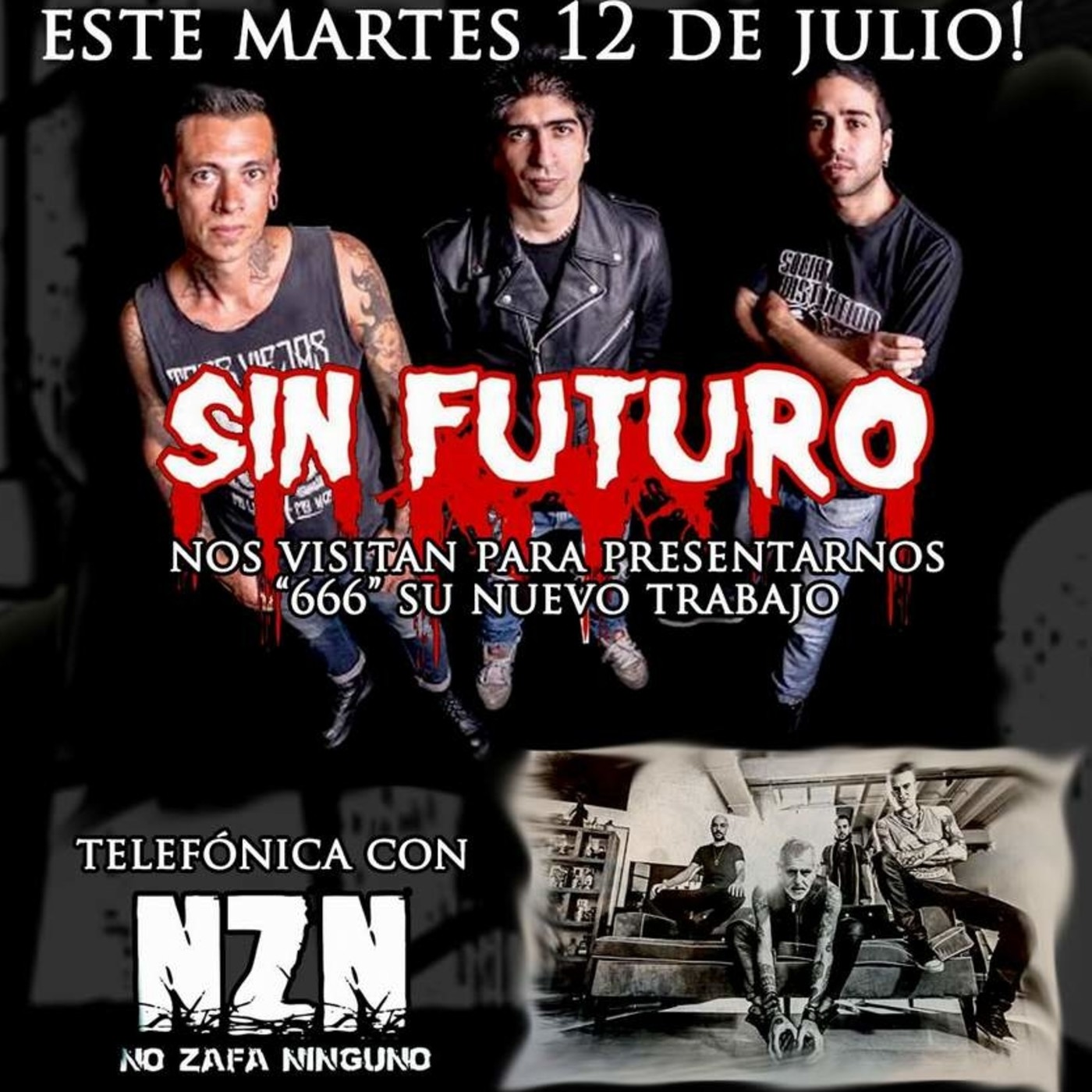 Nota en estudios a SIN FUTURO y telefónica con Niño Khayatte de NZN (No Zafa Ninguno)
