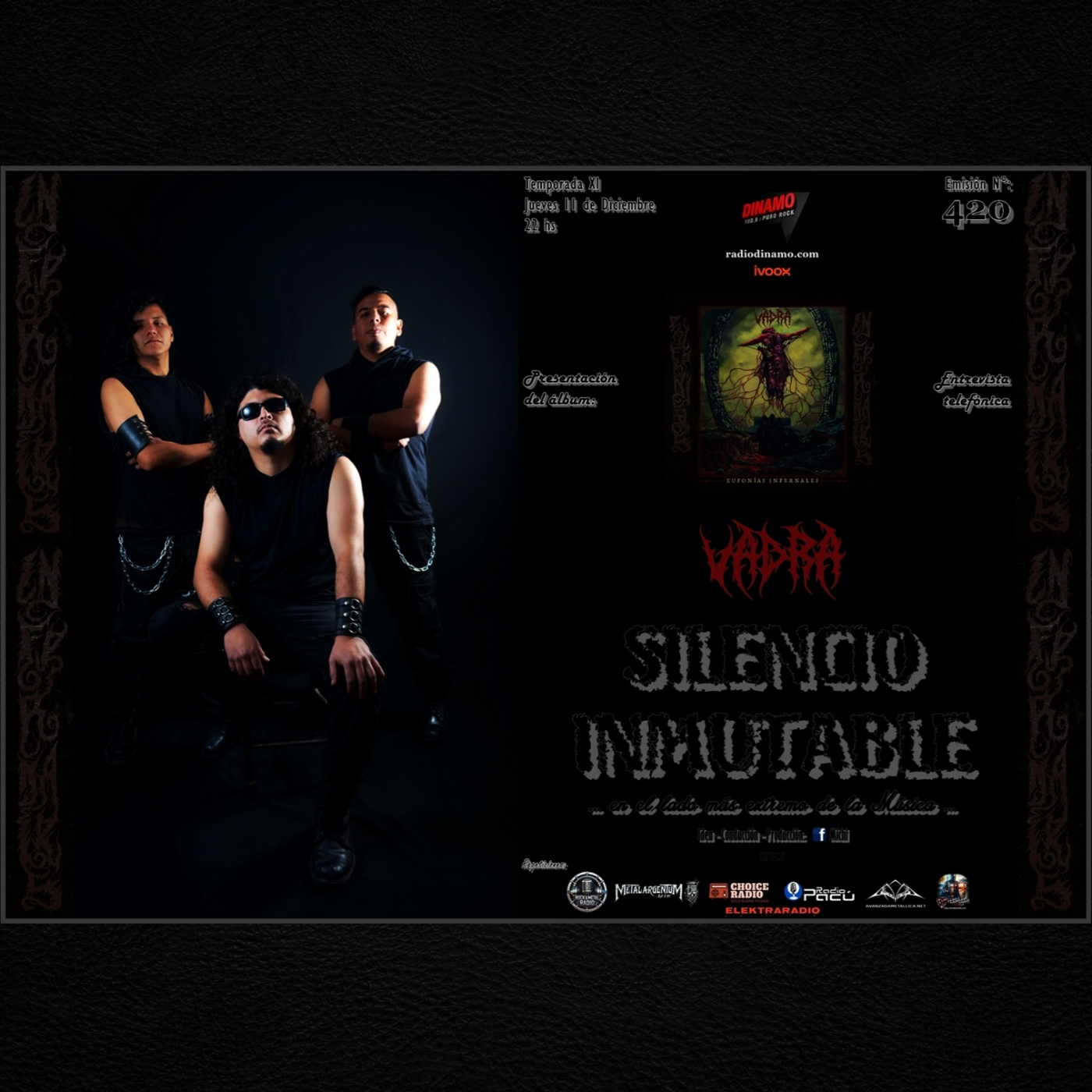Contenido destacado: Presentación del álbum "Eufonías infernales" de VADRA (death metal, Jujuy) + entrevista telefónica a Marko Germán (guitarrista, vocalista).