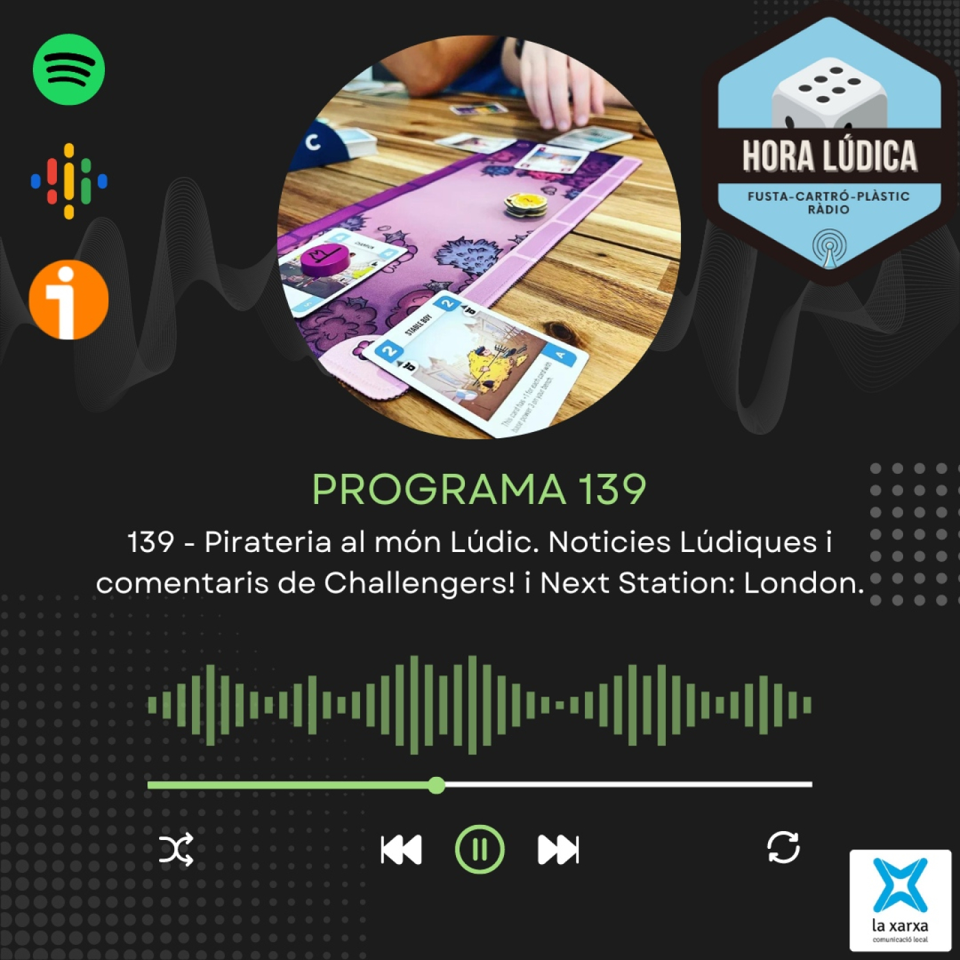 En Juan Carlos Reigosa i en Javi Rodríguez parlen de la pirateria al món dels jocs de taula, repassen les principals notícies Lúdiques i encara els hi queda temps per... per... comentar dos jocs! En Javi ens parla del Challengers! i en Juan Carlos del Next Station: London.