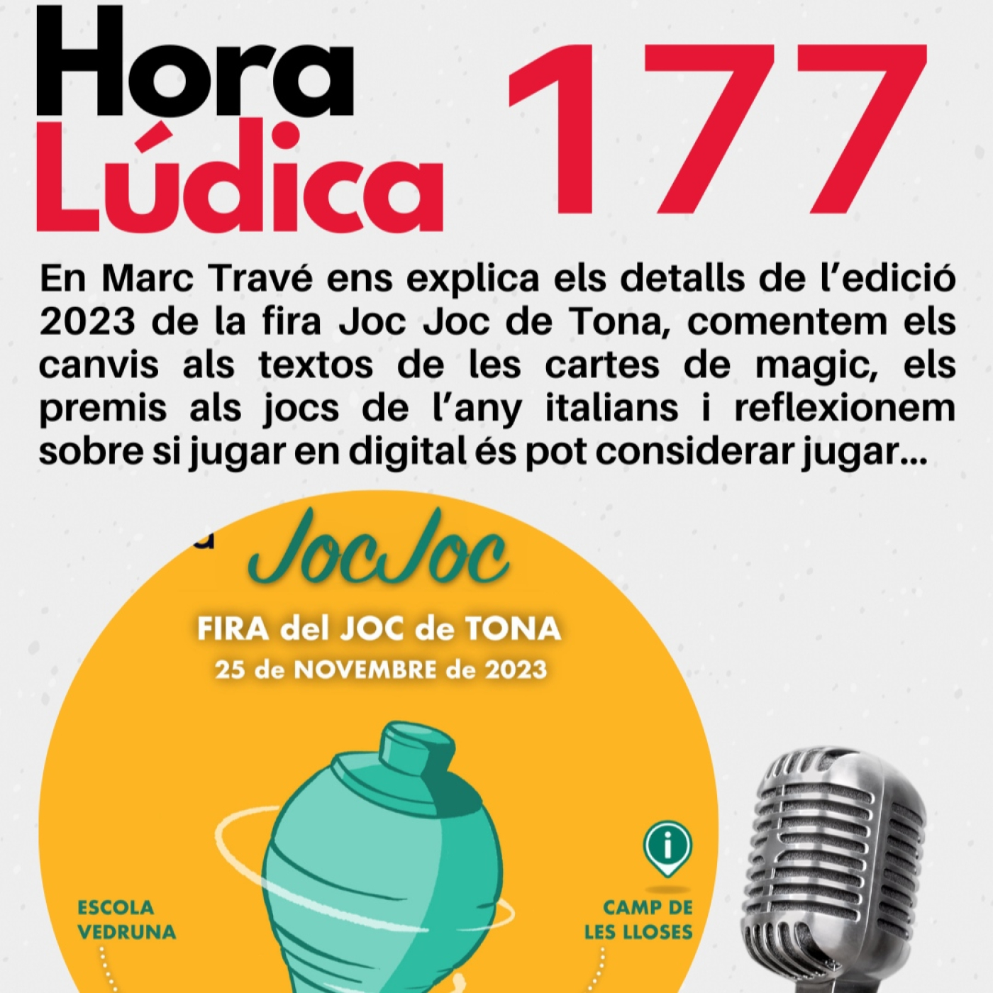 En Marc Travé ens explica els detalls de l’edició 2023 de la fira Joc Joc de Tona, comentem els canvis als textos de les cartes de magic, els premis als jocs de l’any italians i reflexionem sobre si jugar en digital és pot considerar jugar…😀