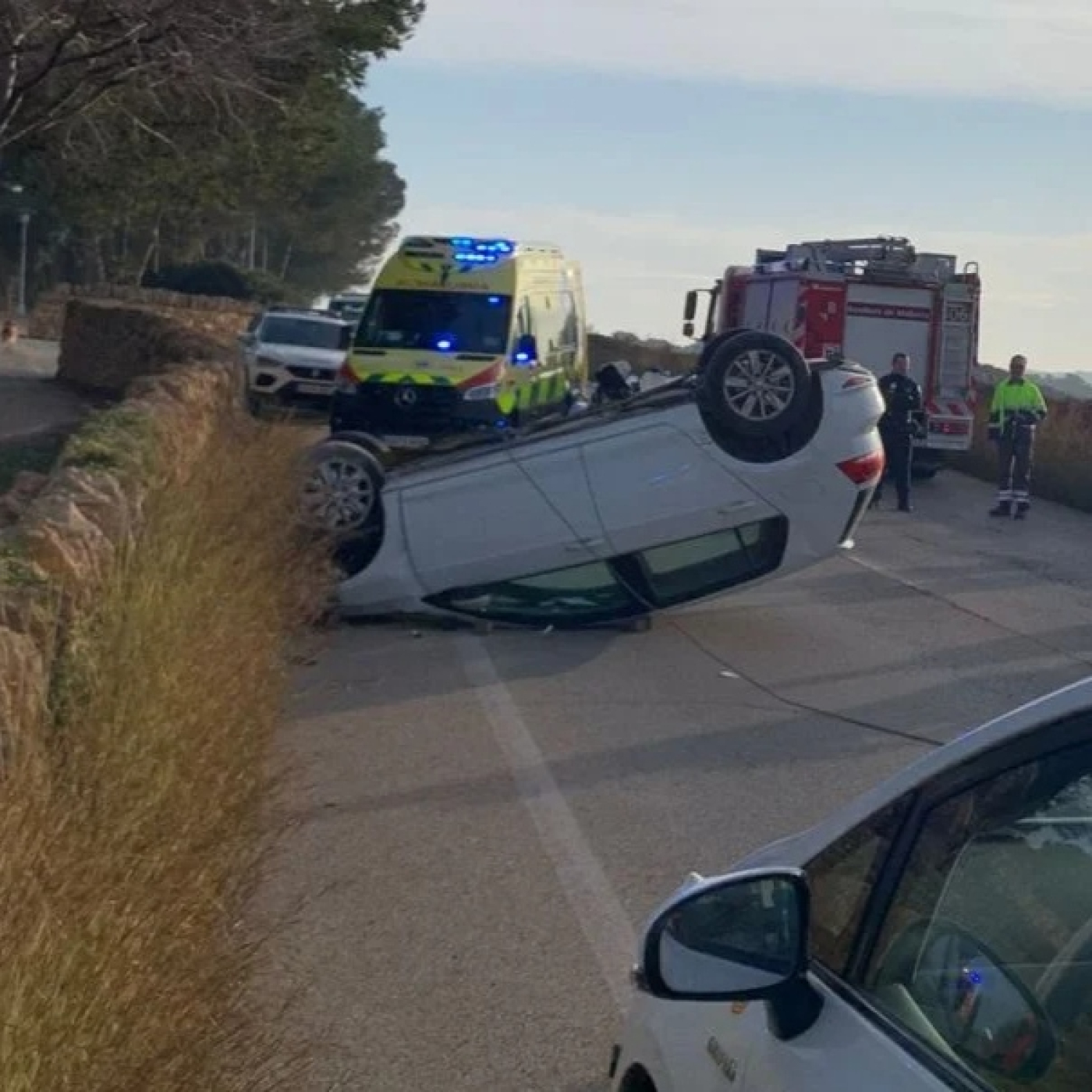 Una mujer ha resultado herida este viernes tras volcar su coche en la carretera que une Son Ferrer con El Toro.