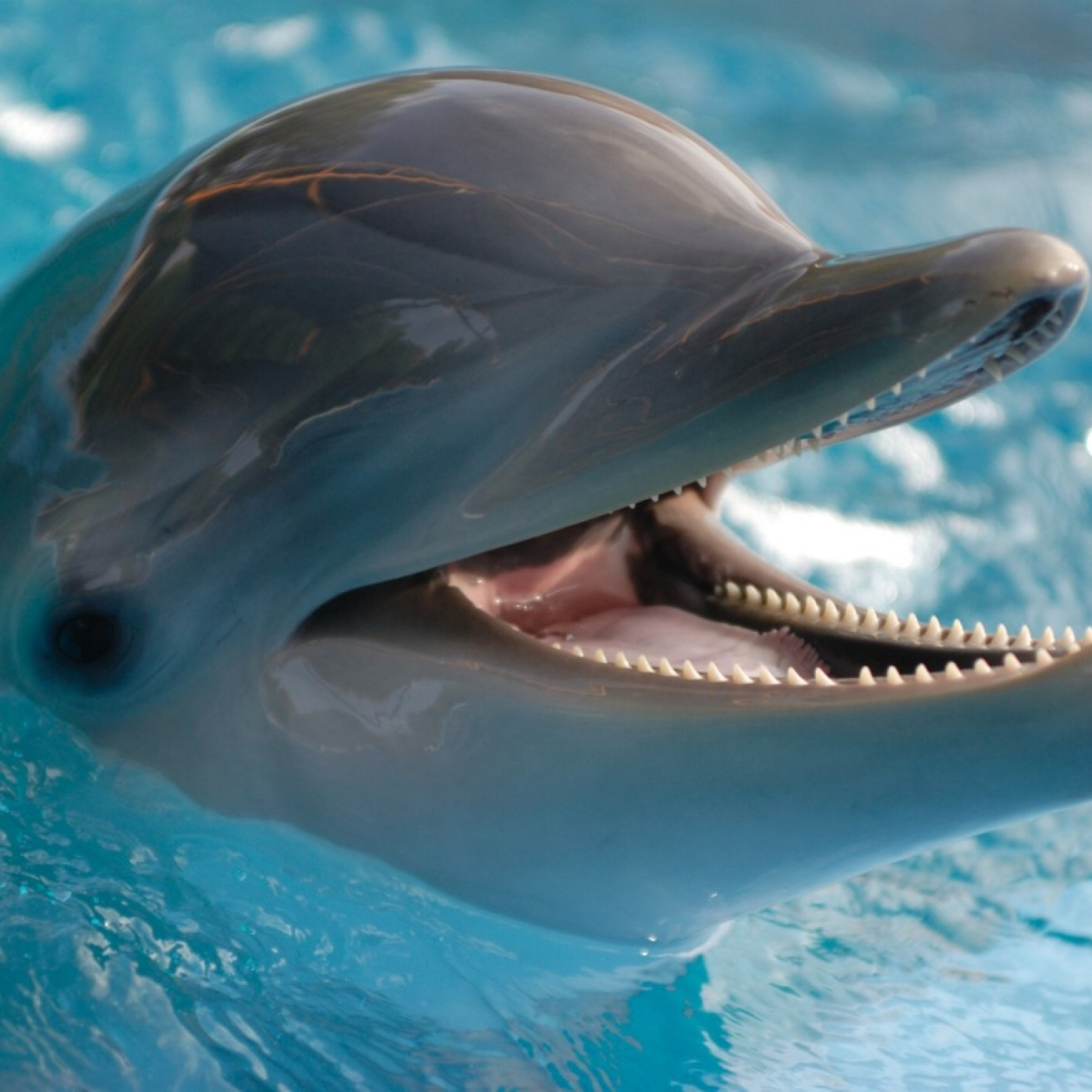 Los delfines son un tipo de mamíferos cetáceos pertenecientes a la familia Delphinidae. Pueden vivir más de 30 años en cautividad y tienen una longitud de 3,5 metros aproximadamente. En la naturaleza, estos nadadores elegantes pueden alcanzar velocidades de más de 30 kilómetros por hora. Durante sus desplazamientos surgen a menudo a la superficie del mar para respirar, haciéndolo una media de dos o tres veces por minuto. Viajan en grupos sociales y se comunican entre sí por un complejo sistema de chirridos y silbidos que del mismo modo les sirve para ecolocalizar a sus presas. Pueden producir hasta 1.000 "ruidos de clic" por segundo.