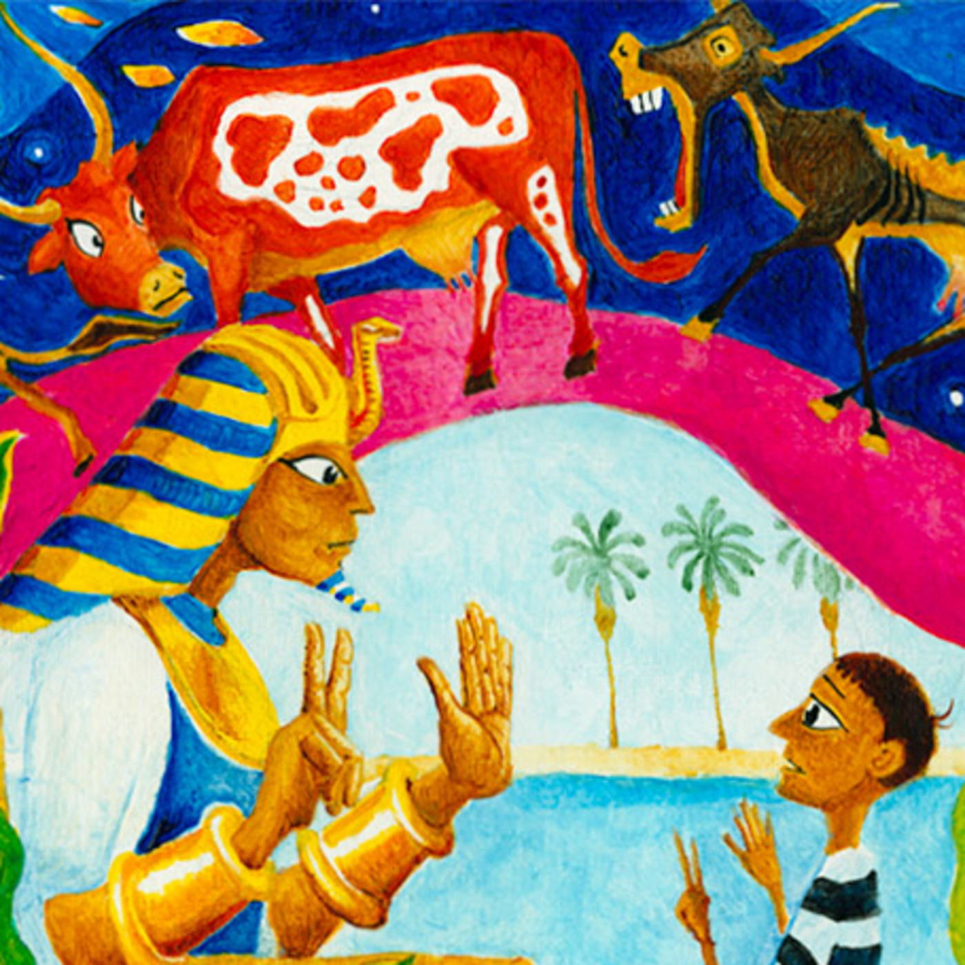La prisión de Iosef termina cuando el Faraón sueña con siete vacas gordas que son tragadas por siete vacas flacas, y con siete espigas gordas tragadas por siete espigas delgadas. Iosef interpreta los sueños diciendo que significan que siete años de abundancia serán seguidos de siete años de hambruna, y aconseja al Faraón almacenar grano durante los siete años de abundancia. El Faraón nombra a Iosef como gobernador sobre Egipto. Iosef se casa con Asnat, hija de Potifar, y tienen dos hijos, Menashé y Efraím.