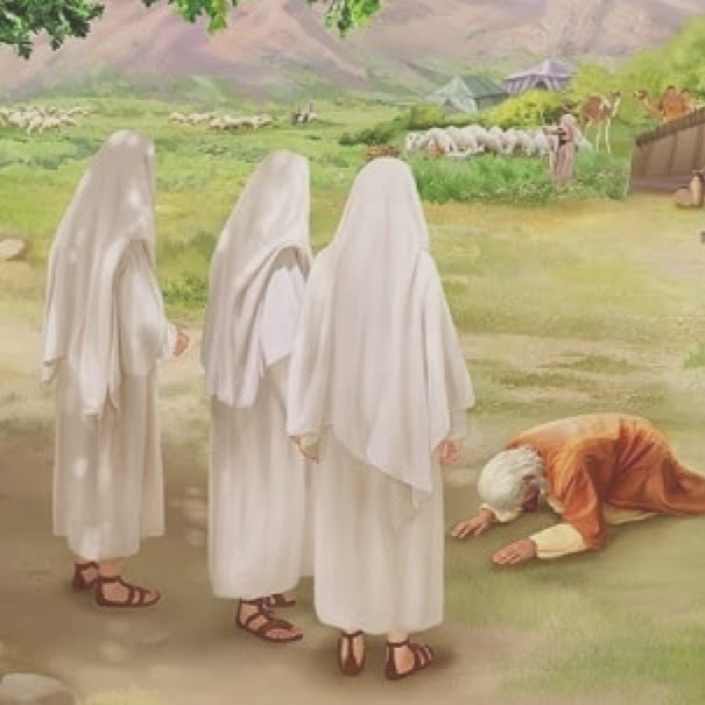 Elohim se revela a sí mismo a Avraham tres días después de la circuncisión del primer Hebreo a la edad de 99 años; pero Avraham se retira rápidamente del encuentro para preparar una comida para tres invitados que aparecen en el calor del desierto. Uno de los tres, que son ángeles disfrazados de hombres, anuncia que, exactamente en un año, la infértil Sara dará a luz a un hijo. Sara se ríe.