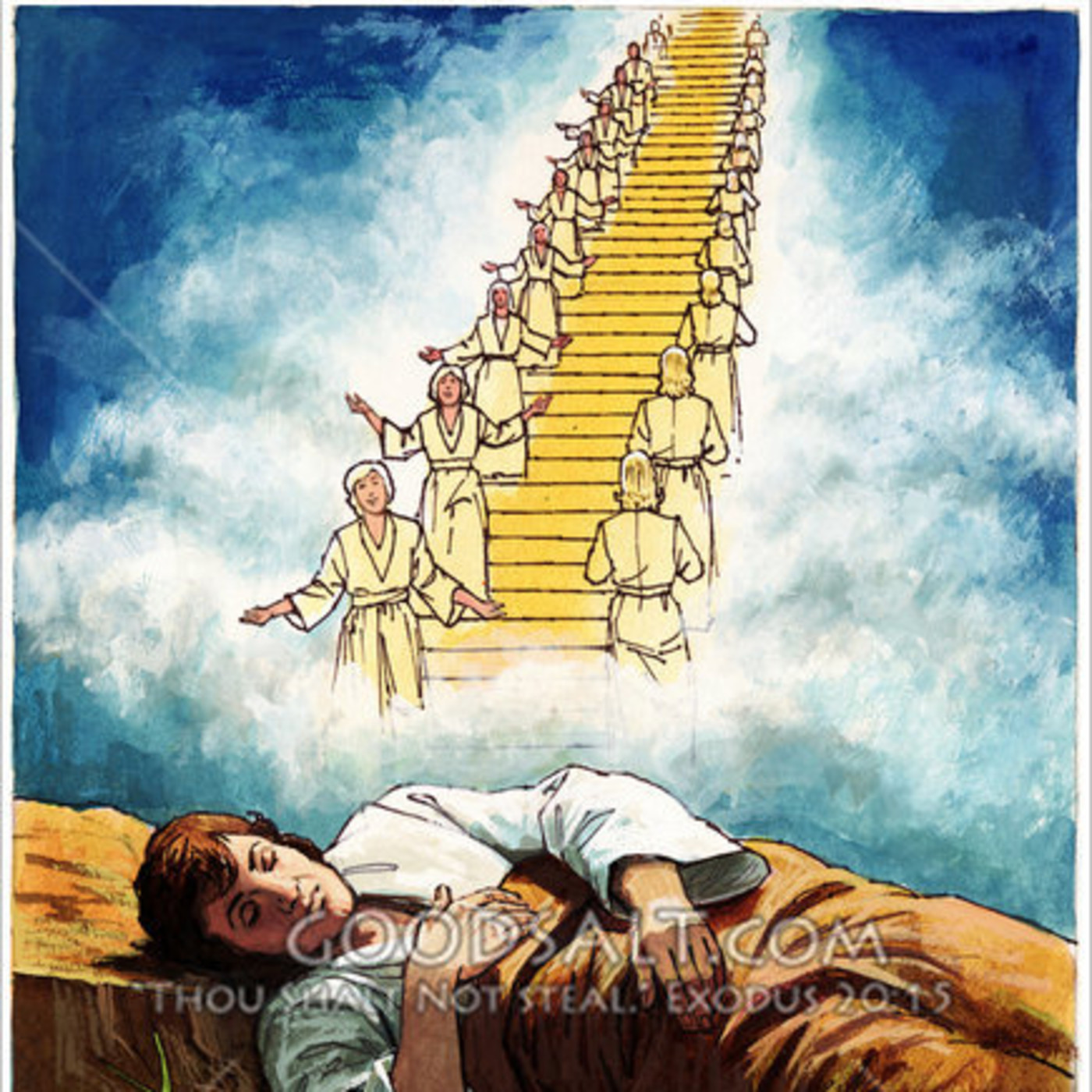 Iaacov deja su lugar de nacimiento en Beer Sheva y viaja a Jaran. En el camino se encuentra con “el lugar” y duerme allí, soñando con una escalera que conecta el cielo con la tierra, y con ángeles subiendo y descendiendo por ella; Elohim se le aparece y promete que la tierra sobre la cual está acostado será dada a sus descendientes. Por la mañana, Iaacov eleva la piedra sobre la cual apoyó su cabeza como una altar y un monumento, prometiendo que será la casa de Elohim.