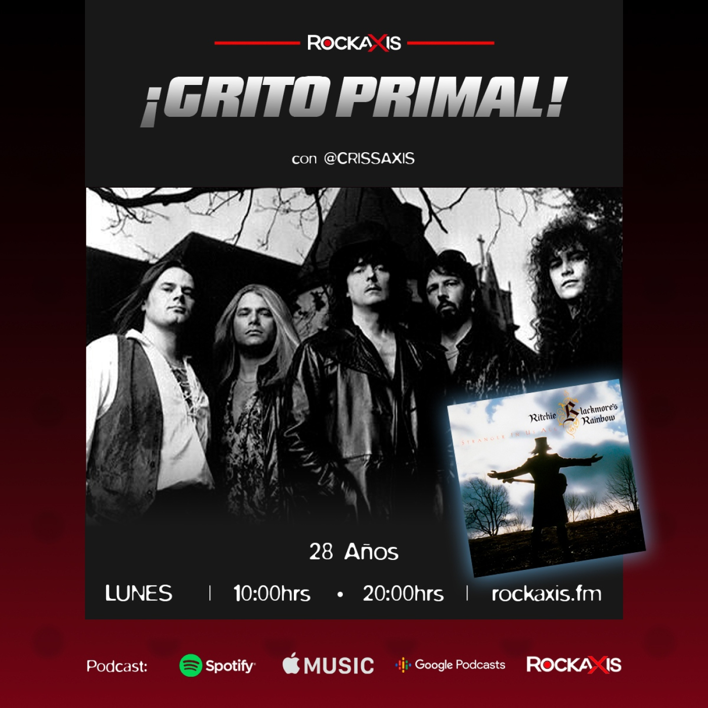 Este lunes en #GritoPrimal Programa 17, recordamos el gran álbum "Stranger In Us All" de RAINBOW. Imperdible! La casa del Hard 'N' Heavy, cada lunes a las 10 y 20 Hrs y repetición los sábados a las 12 Hrs, sólo aquí en 'Grito Primal' de Rockaxis! - Podcast en iTunes, Apple Music, Google Podcast y Spotify. Conduce: @CrissAxis - Invita: @Bigstore_cl