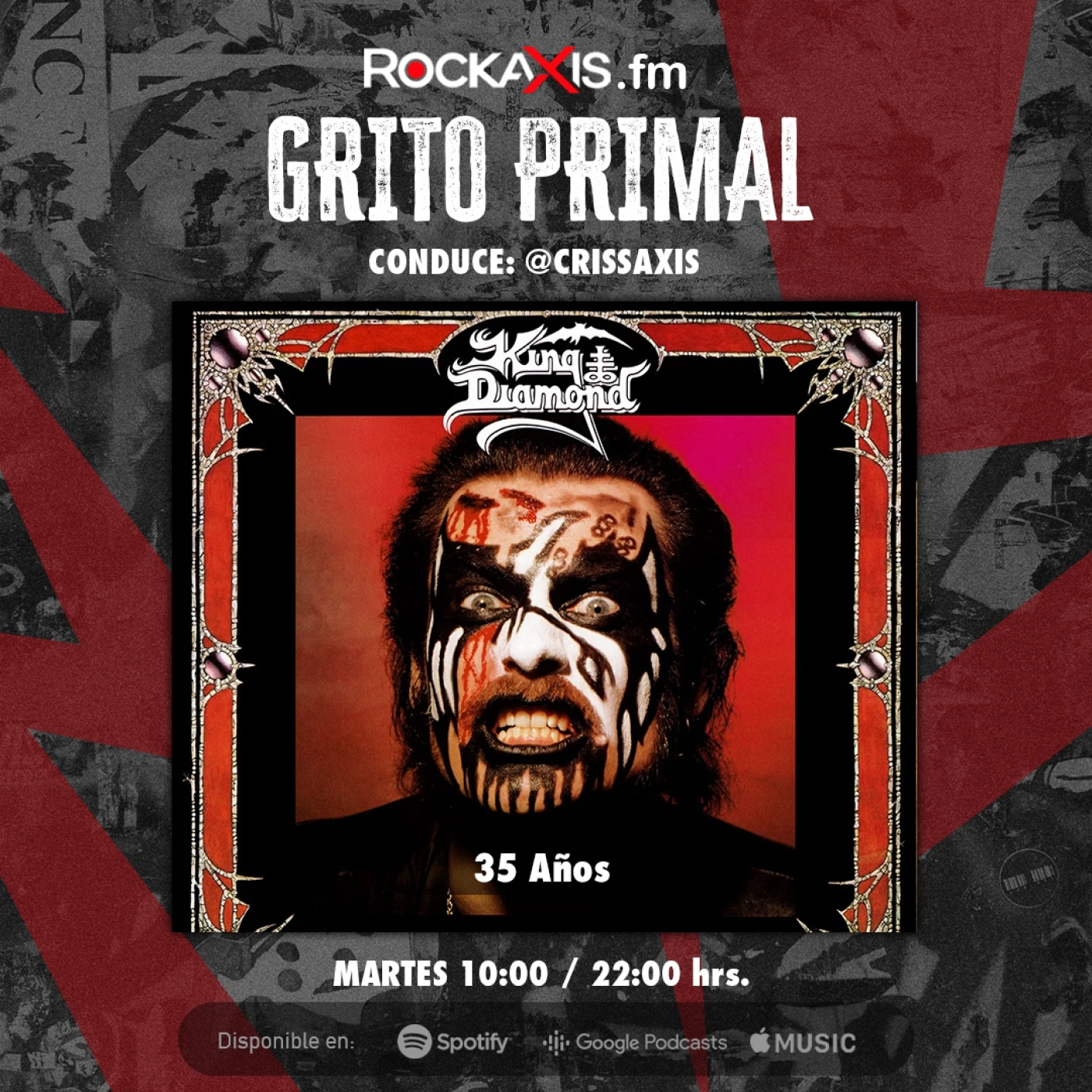 de KING DIAMOND. Imperdible!! Martes 10 y 22 Hrs en Rockaxis.Fm / Conduce @CrissAxis / @FatesWarning @KingDiamond