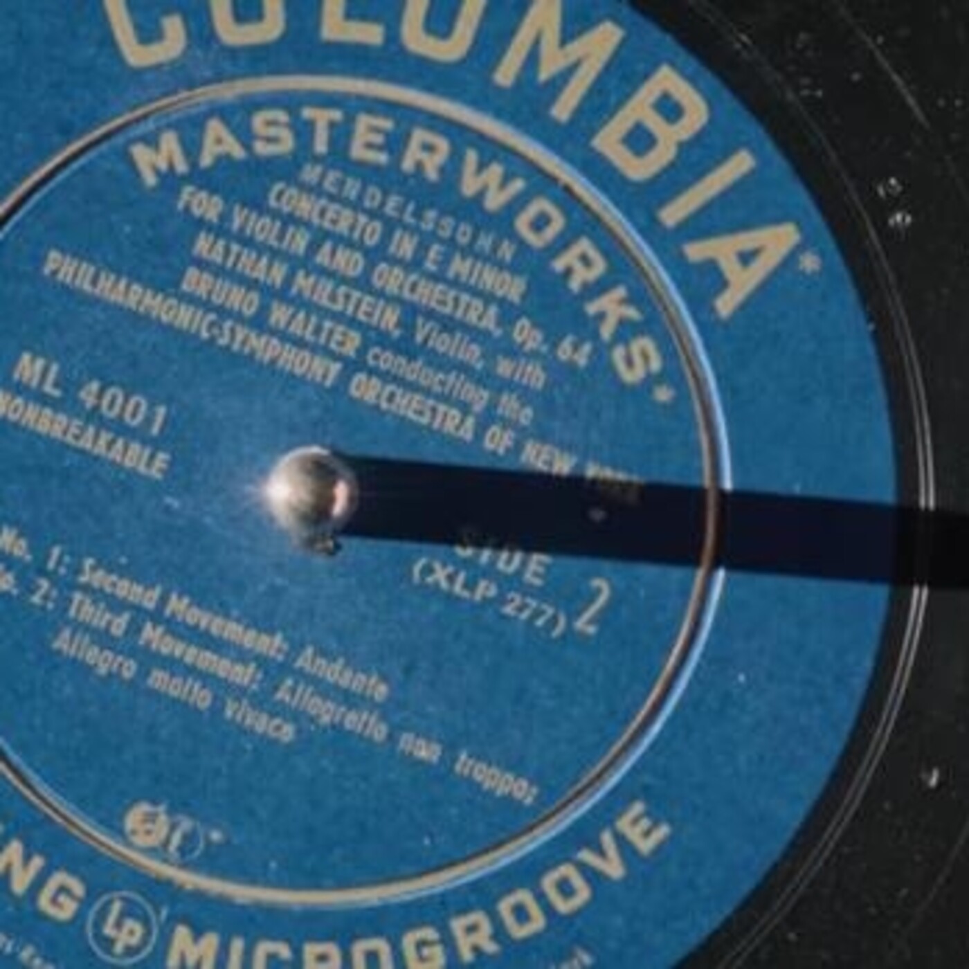 La primera grabación registrada en este formato fue el Concierto en Mi menor Opus 64 para violín y orquesta, de Felix Mendelssohn, interpretado por el violinista Nathan Milstein con el acompañamiento de la Orquesta Filarmónica de Nueva York dirigida por Bruno Walter. Hoy escucharemos de ésta primera grabación el primer movimiento de éste concierto para violín de Mendelssohn.