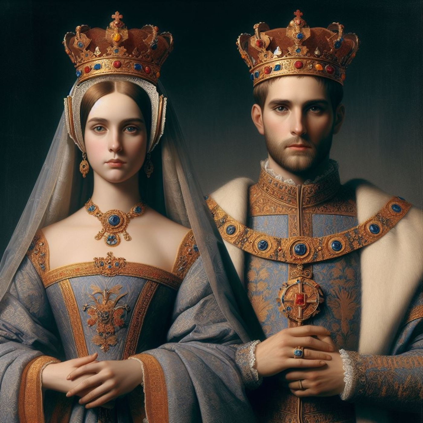 Fernando II de Aragón e Isabel I de Castilla, cuyo matrimonio (1469) supuso la unificación de España, de la que fueron los primeros monarcas. Aunque se empleó anteriormente, el apelativo de Católicos se les confirió formalmente en una bula publicada por el Papa Alejandro VI en 1494, en reconocimiento a su reconquista de Granada de manos de los moros (1481-1492), sus descubrimientos del Nuevo Mundo (1492) y su fortalecimiento. de la iglesia por agencias como la Inquisición española y medidas como obligar a los judíos a convertirse al cristianismo o enfrentar el exilio (1492).