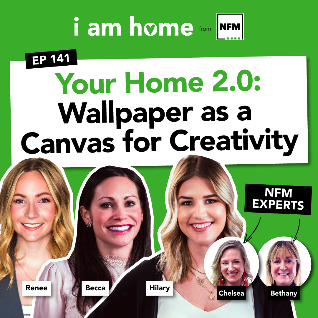 On today’s episode of I AM HOME, our hosts Renee, Becca and Hilary are joined by Bethany Bratches and Chelsea Heppner, two of NFM’s Interior designers in Omaha’s Design Gallery. Continuing with our home improvement series, we discuss how wallpaper is a canvas for creativity in every room! Whether you’re looking for minimal or texture, big and bold patterns, wallpaper adds richness to your home. Join us for this fun and informative episode on all things wall décor!