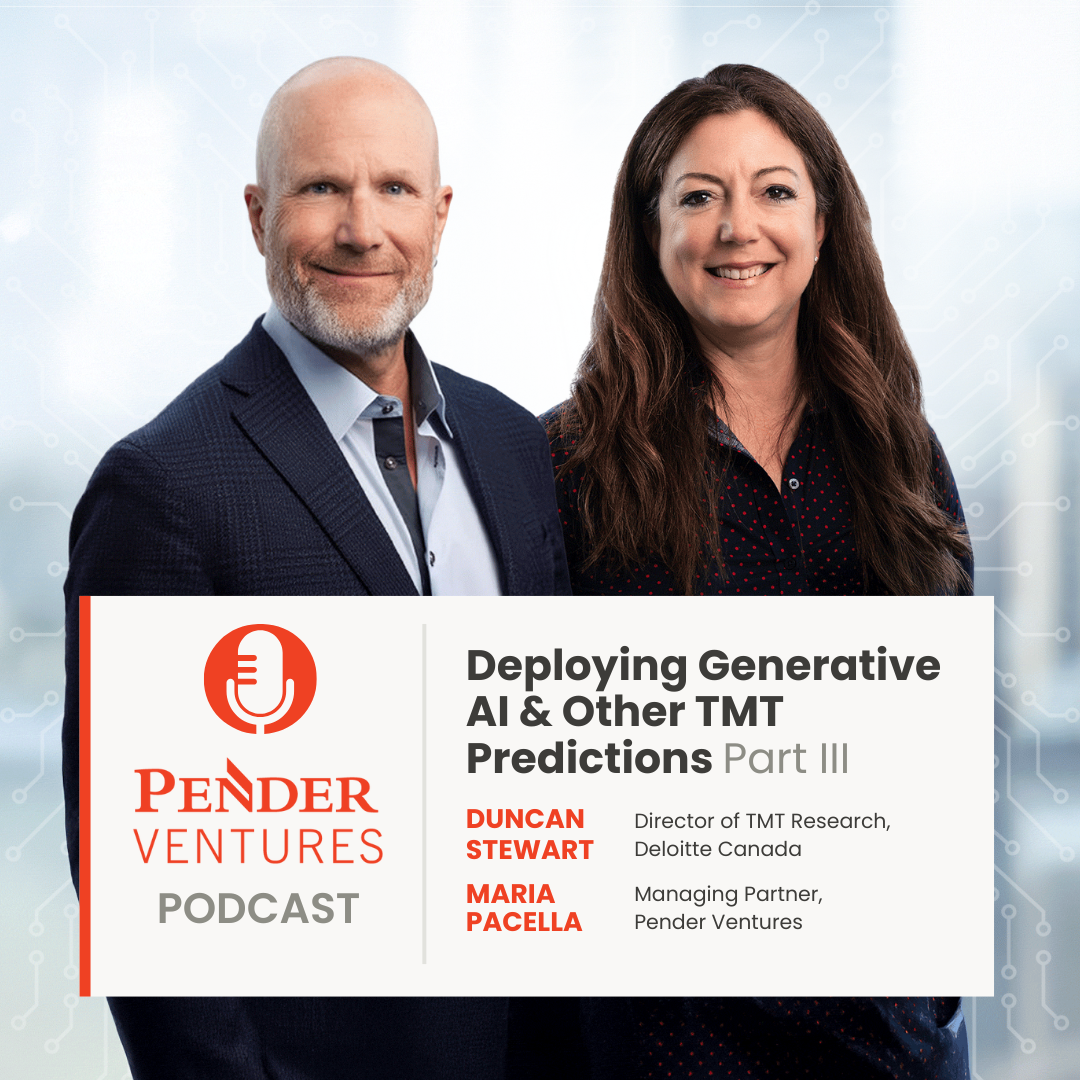 We are pleased to welcome back Duncan Stewart, Director of TMT Research at Deloitte Canada, for Pender Ventures' annual Technology, Media, and Telecommunications (TMT) update. Hosted by Maria Pacella, Managing Partner at Pender Ventures, this wide-ranging conversation explores Deloitte's 2026 TMT Predictions and what they mean for investors, operators, and policymakers. Duncan shares insights on AI-driven economic growth, data center infrastructure, agentic AI, robotics, energy constraints, and the narrowing gap between AI promise and reality.